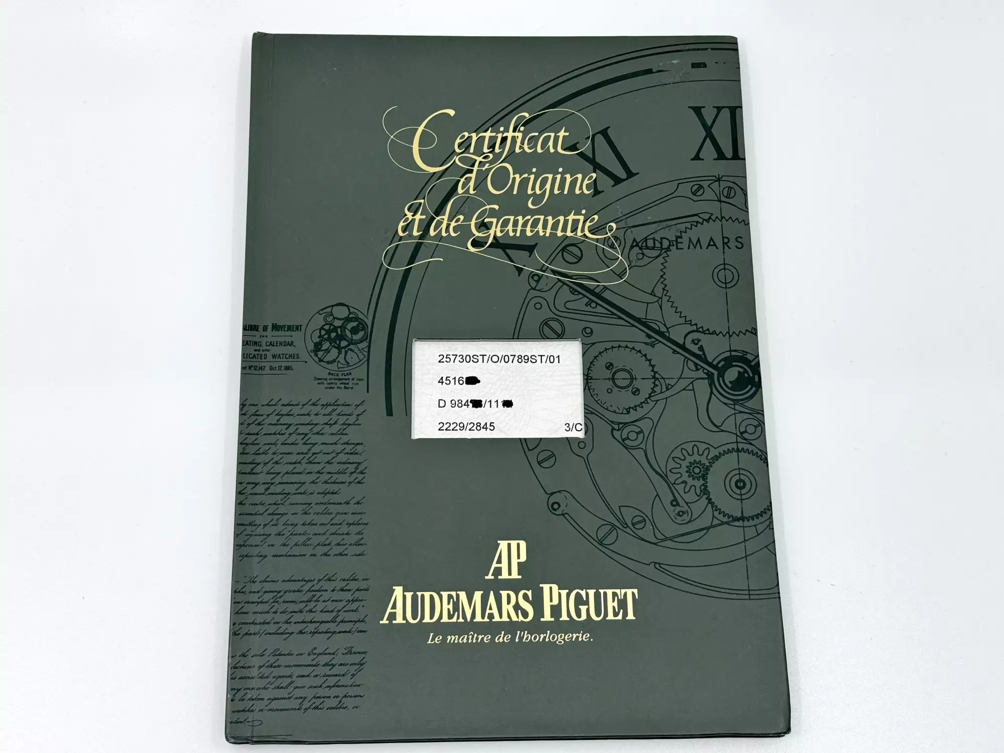 Audemars Piguet Certificate and Warranty Book for the Watch model Royal Oak Dual Time in Steel | Ref. 25730ST/O/0789ST/01 | Case No. D 984xx/11xx | Movement No. 4516xx | very good condition. Price includes 19% VAT! This item is directly available.