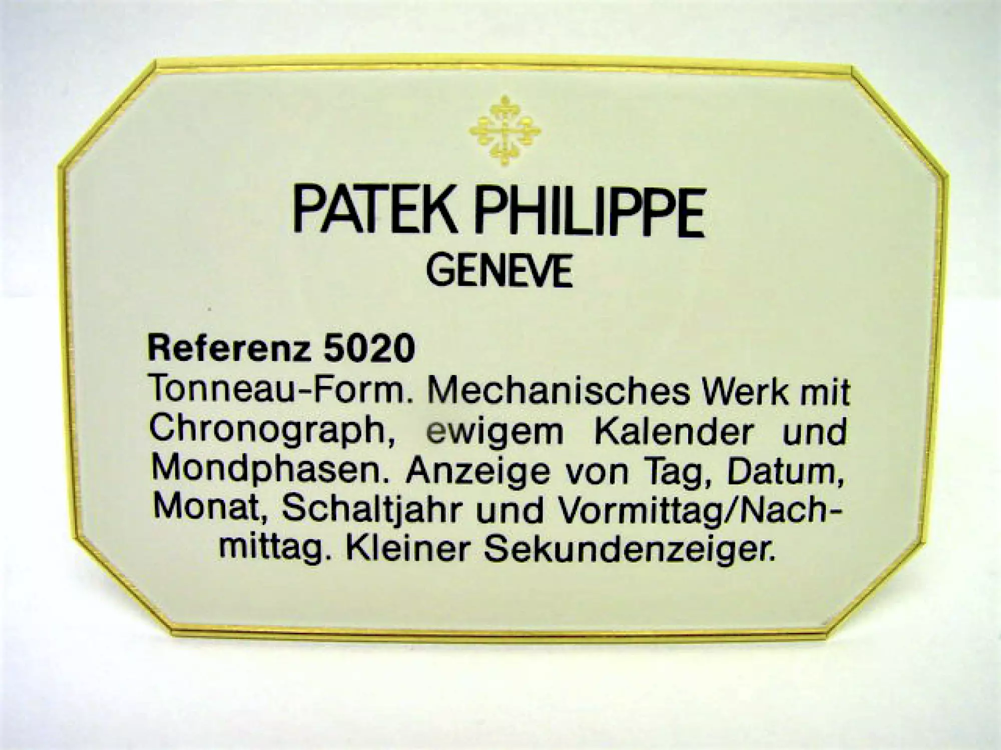 Patek Philippe Concessionaire Decorative Stands for the rare Reference 5020 Grand Complication | approximately 7.3 cm x 4.8 cm | very good condition. Price includes 19% VAT! This item is directly available.