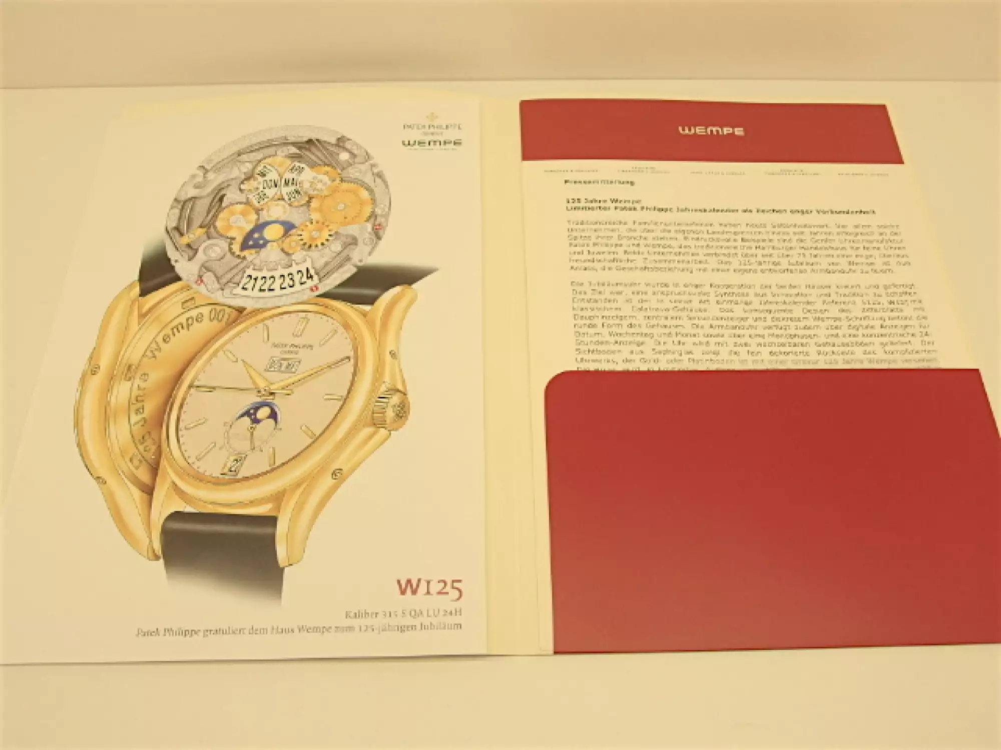 Patek Philippe Press Information on the limited Wempe Ref. 5125 | incl. Drawing with Data - CD - Map. Price includes 19% VAT! This Item is directly available.