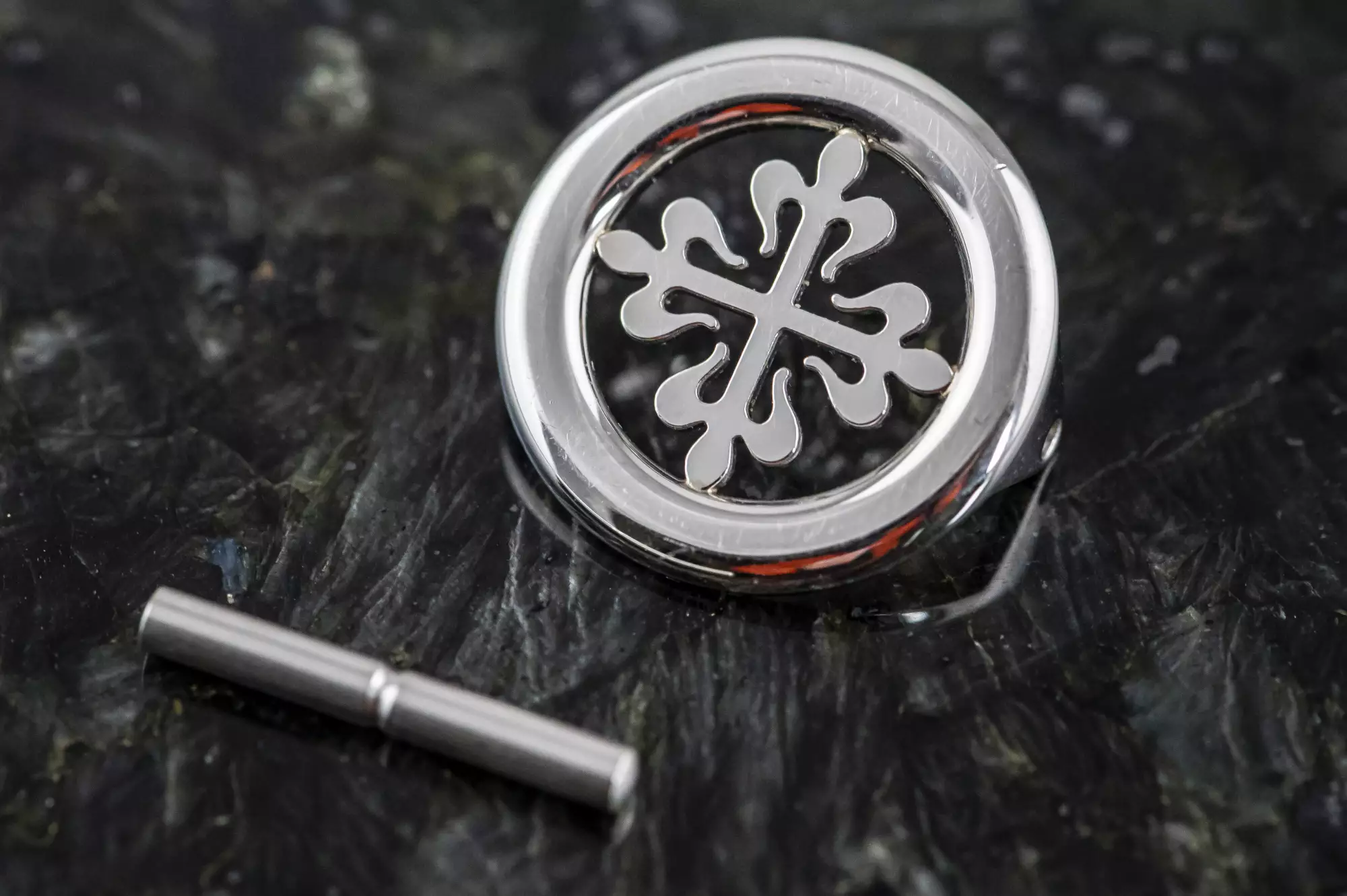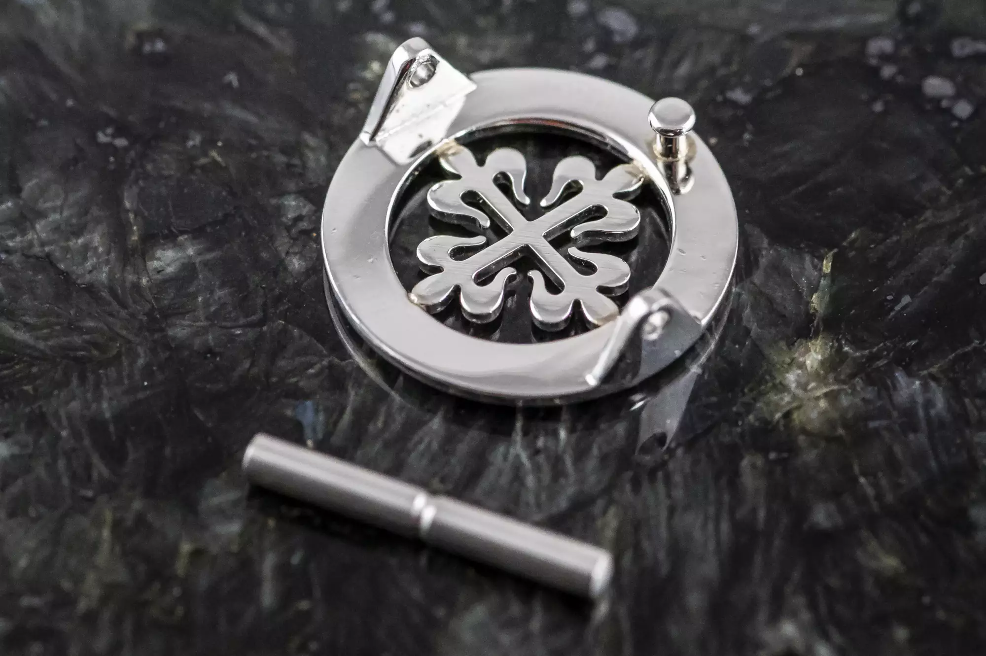 PATEK PHILIPPE Calatrava Cross in 950 Platinum | for 16mm Platinum folding clasp | with Pen | total Weight 7 grams | Diameter 18mm | very good condition. Price includes 19% VAT! This Item is directly available.