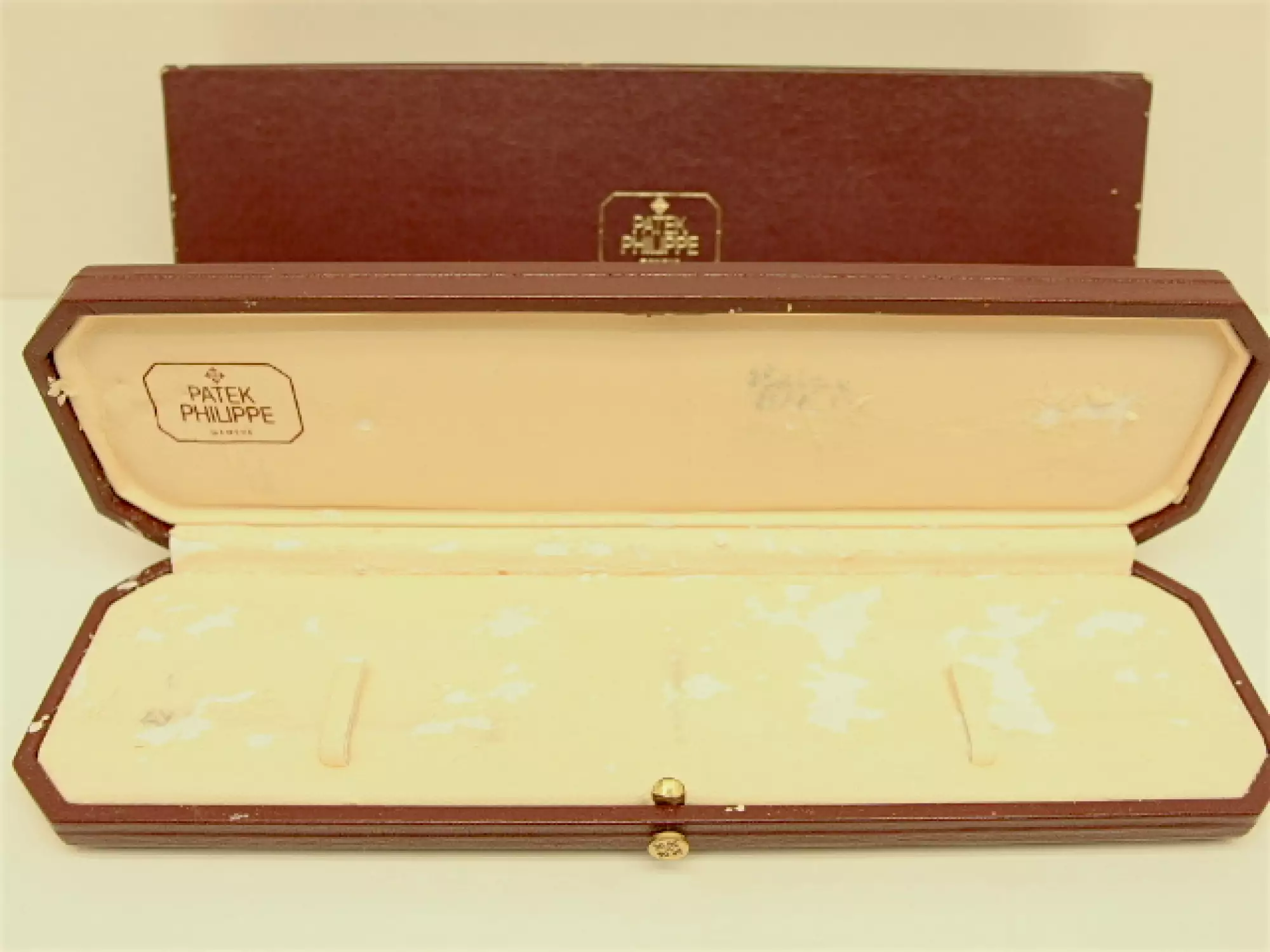 Patek Philippe lange Box für Lederband Modelle mit Umkarton | ca. 80er / 90er Jahre | guter Zustand. Preis ist inkl. 19% MwSt! Dieser Artikel ist sofort lieferbar.