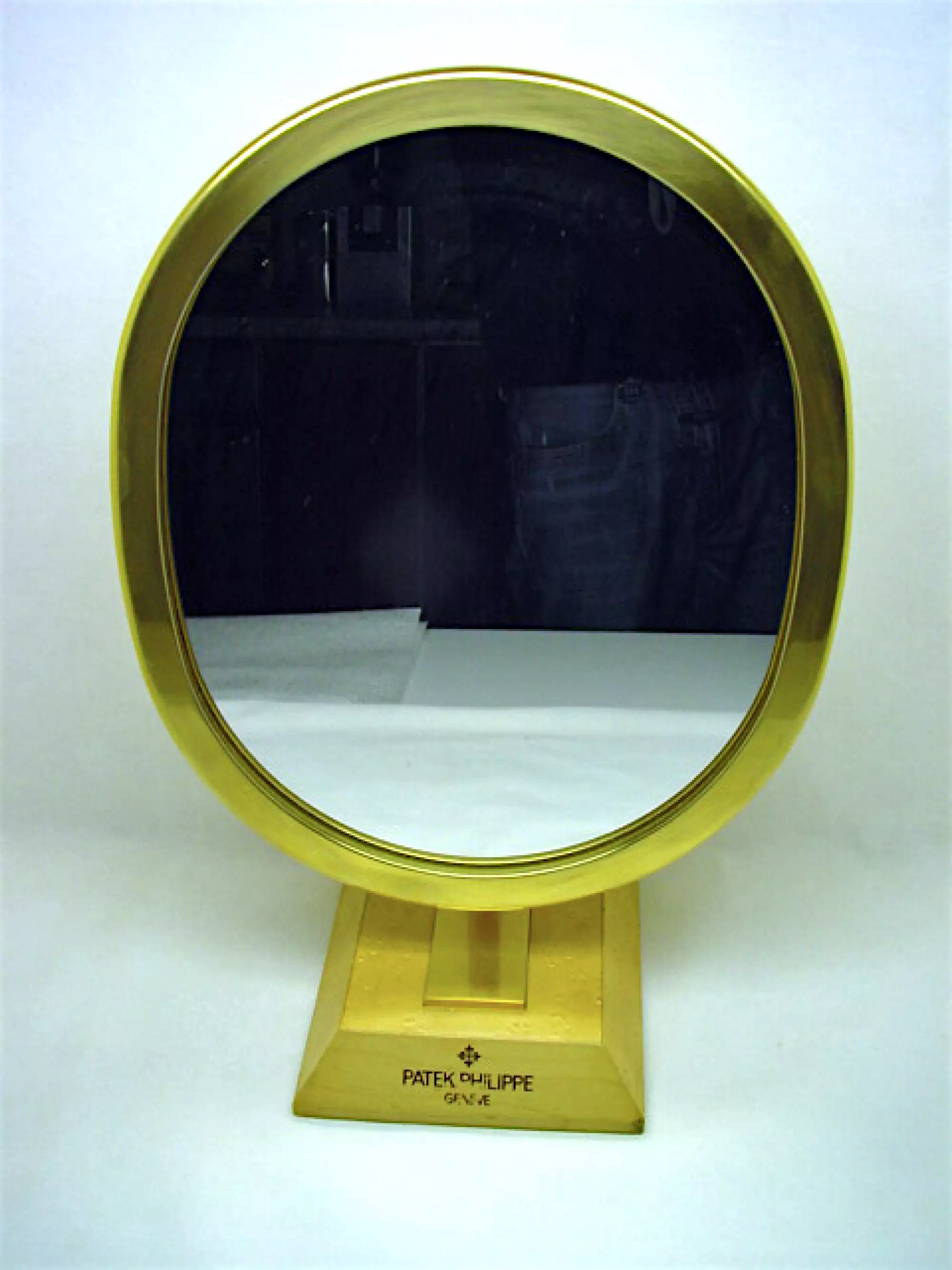 Patek Philippe Ellipse D'Or Konzessionärs Spiegel, sehr schwere Ausführung. Abmessungen: 37 cm x 26 cm, der Spiegel befindet in einem sehr gutem Zustand. Preis ist inkl. 19% MwSt! Dieser Artikel ist sofort lieferbar.