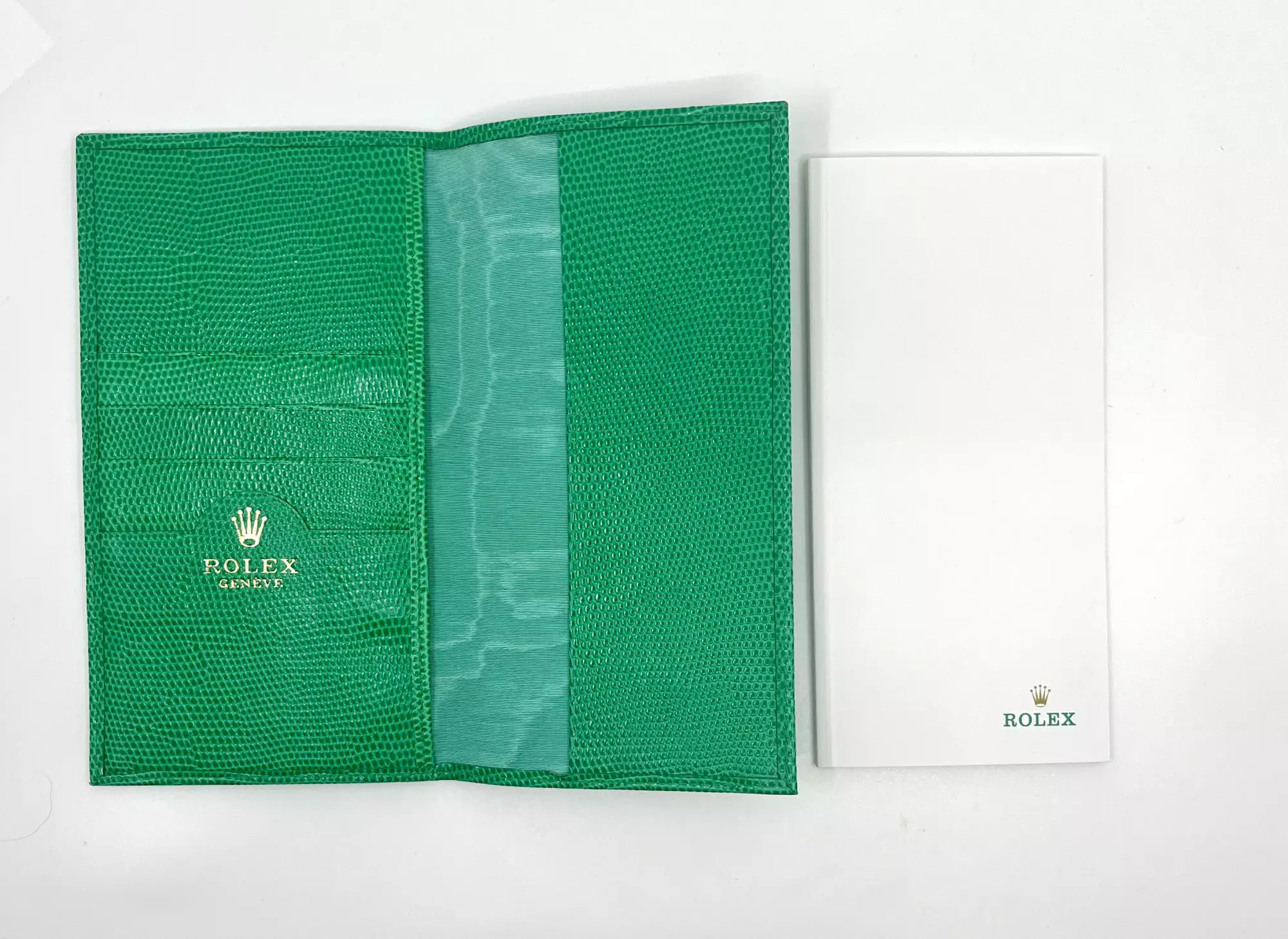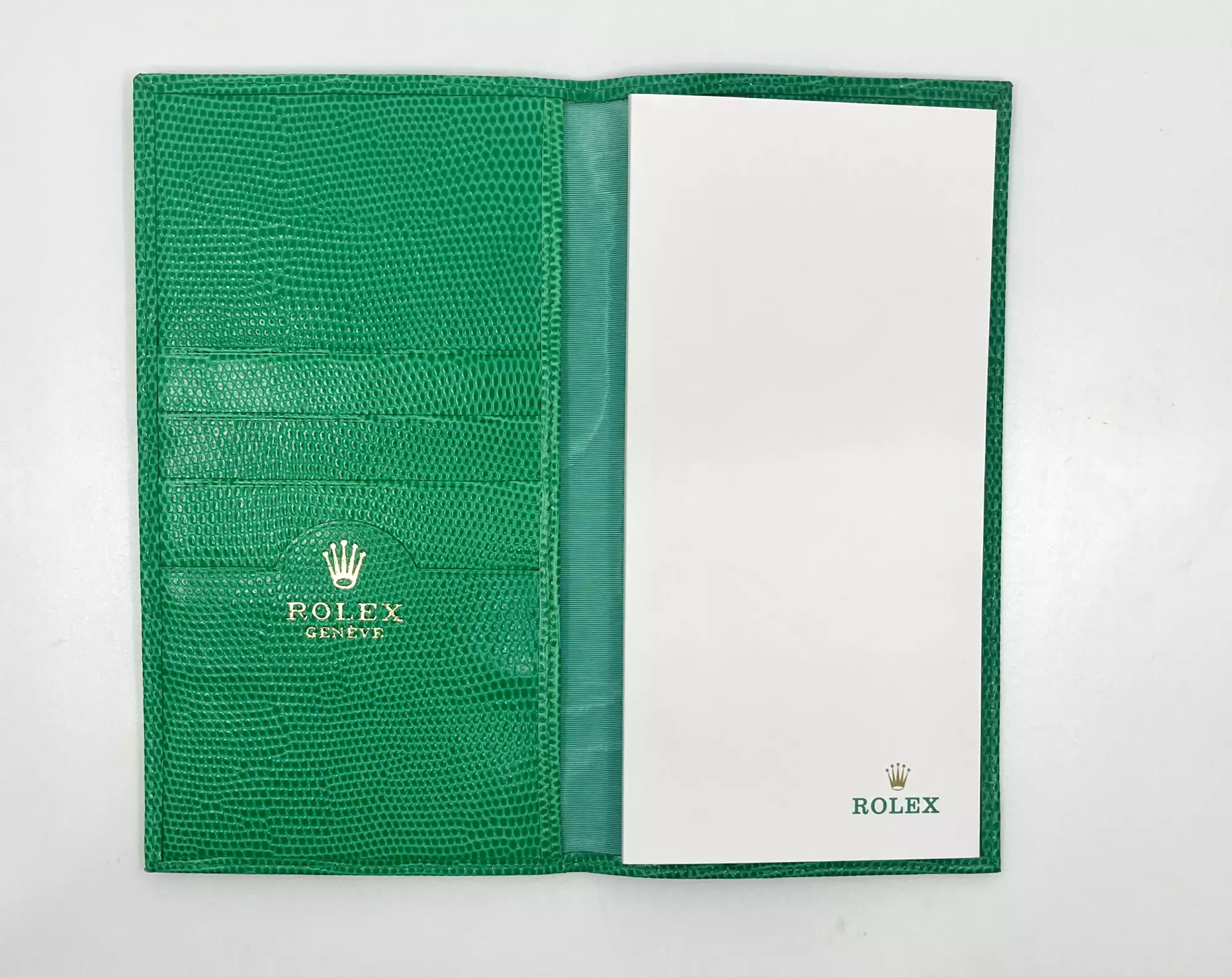 Sehr seltene Rolex Ledermappe grün | zur Rolex Beach Daytona mit der Referenz 116519 | Abmessungen sind 18,5 x 10 cm | sehr guter Zustand | mit Rolex Notizblock. Preis ist inkl. 19% MwSt! Dieser Artikel ist sofort lieferbar.
