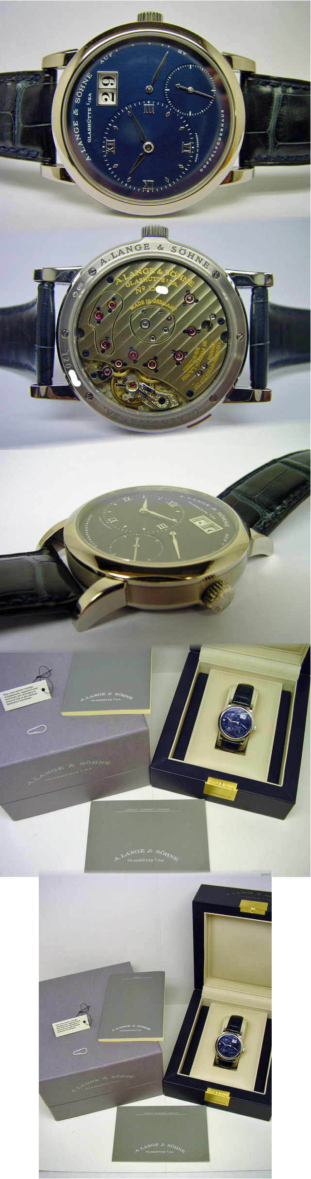 A. Lange & Söhne Lange 1 in 18kt Weißgold, Referenz 101.027, Lange Kaliber L901.0, blaues Zifferblatt, Tresoruhr - ungetragener Zustand, Durchmesser 38,5 mm, Höhe 10 mm, Box & Zertifikat.