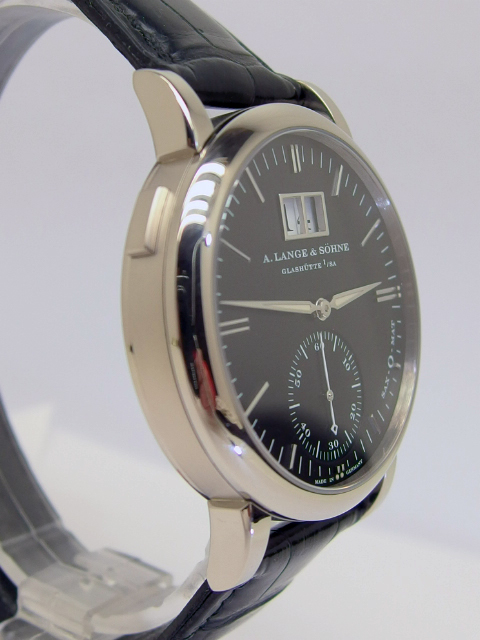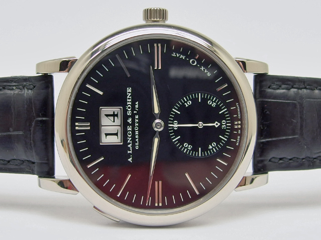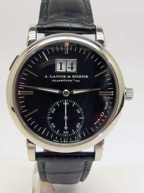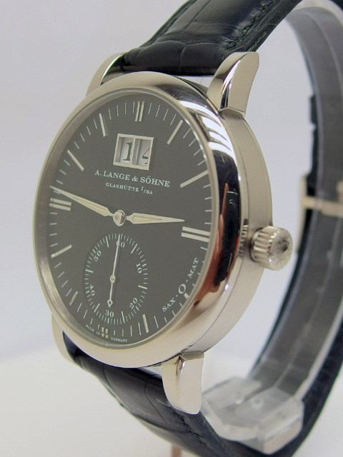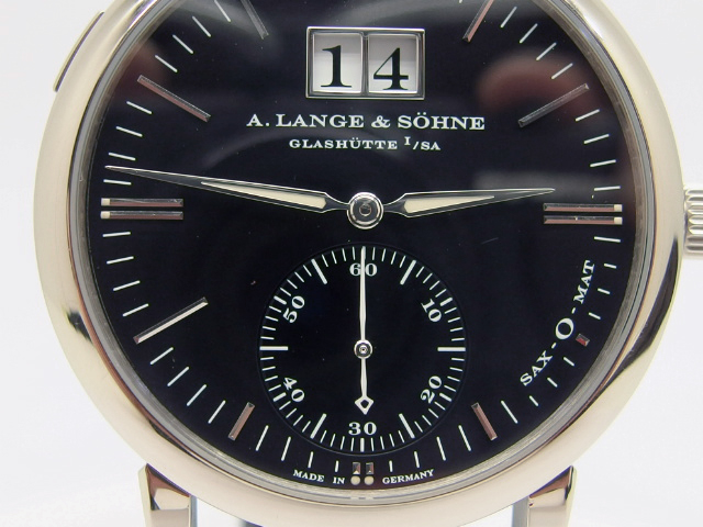 A. Lange & Söhne LANGEMATIK SAX-O-MAT mit Großdatum in 18kt Weißgold, Referenz 308.027 (308027), Automatik Kaliber L921.2, Durchmesser 37mm, Höhe 9,7mm, sehr guter Zustand, 18k Dornschließe, anbei Lange Box & Zertifikat. Dieser Artikel ist differenzbesteuert nach §25A UStG. Dieser Artikel ist sofort lieferbar.