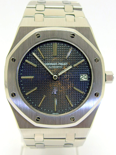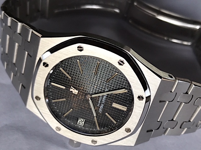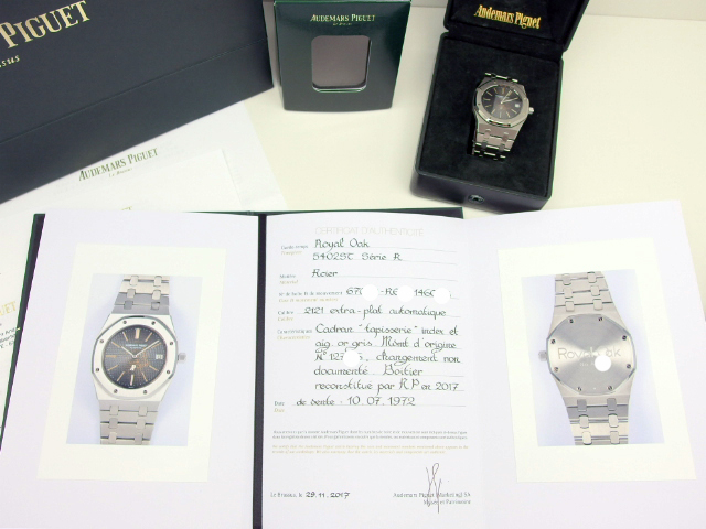 Sehr seltene AUDEMARS PIGUET Royal Oak "Jumbo" A Serie (No. A6x - eine der niedrigsten Gehäusenummern, die je auf dem Markt angeboten wurde) - vom 10. Juli 1972, Referenz 5402ST, Automatik Kaliber 2121, Gay Freres / Brevet Armband & Faltschließe, Zifferblatt 1. Serie mit AP Logo oberhalb 6 Uhr, original Überwurf an der Schließe (Audemars Piguet ausgeschrieben), die Uhr wurde Ende 2017 durch A.P. in Le Brassus revidiert und befindet sich in einem sehr guten Zustand, anbei Revisions Belege / Rechnung von A.P. - original A.P. Lederbox - Stammbuchauszug mit Fotos - A.P. Servicebox - original schmales Zeigerspiel (Stunden- und Minutenzeiger) - Ersatzelement - original Gehäuse (No. A6x). Weitere Informationen und Fotos gerne auf Anfrage. Dieser Artikel ist differenzbesteuert nach §25A UStG. Dieser Artikel ist sofort lieferbar.