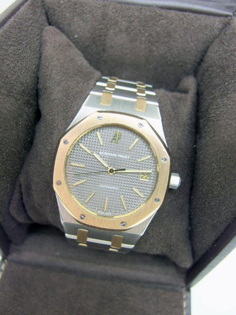 AUDEMARS PIGUET Royal Oak Herrenuhr in Stahl & 18k Gelbgold, Automatik Kaliber mit Datum und Zentralsekunde, verdeckte Faltschließe, Durchmesser ca. 37mm, sehr guter Zustand, anbei Lederbox - Booklet - Flyer. Dieser Artikel ist differenzbesteuert nach §25A UStG. Dieser Artikel ist sofort verfügbar.