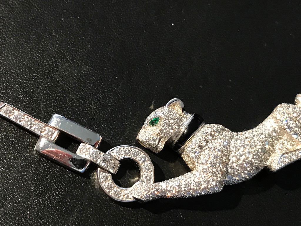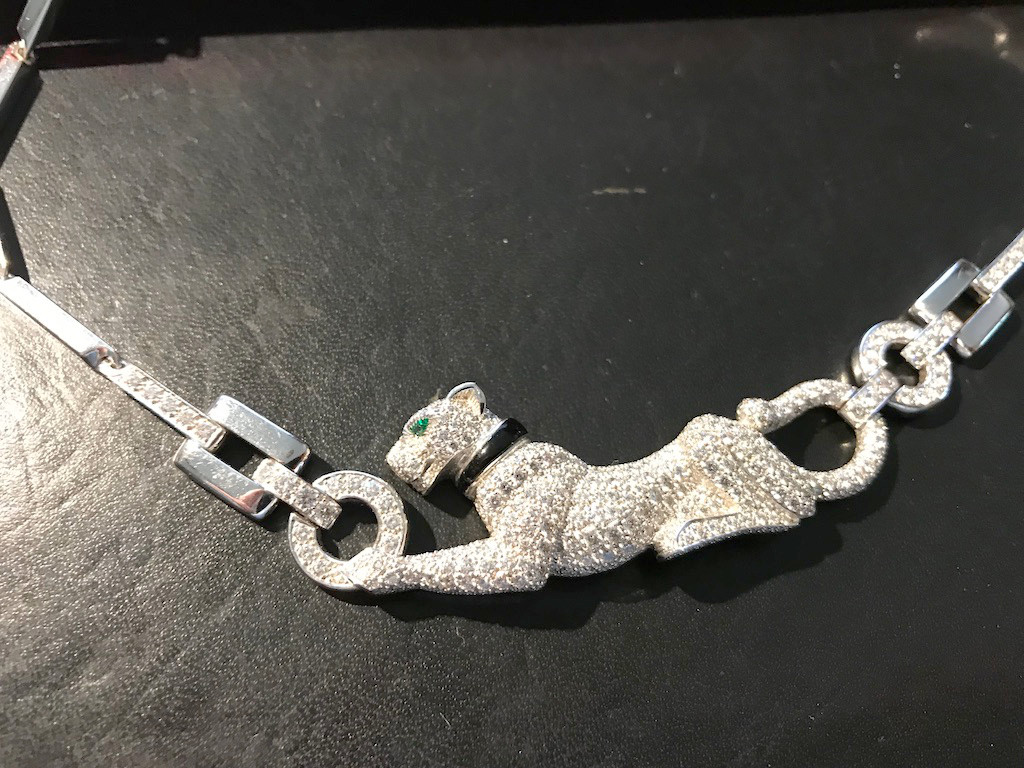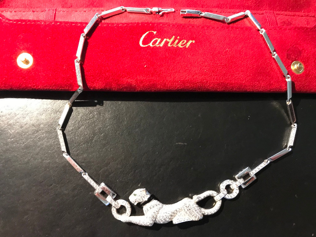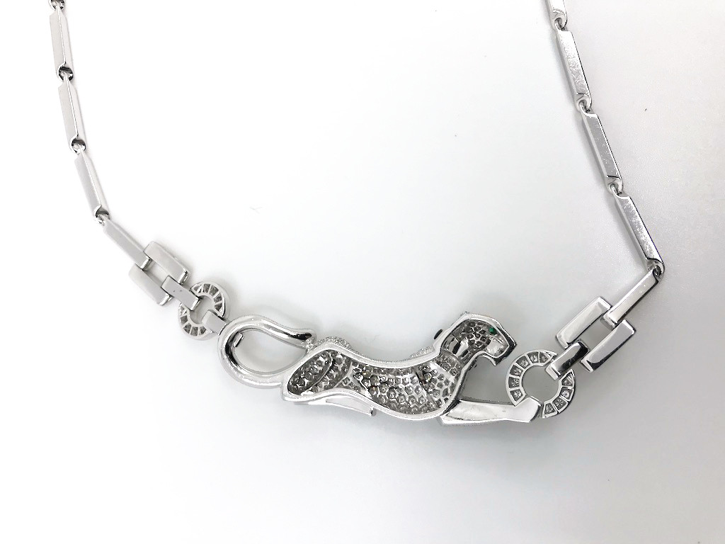 CARTIER Panthère de Cartier Collier in 18k Weißgold | mit ca. 3.71 Carat Brillanten Pavé gefasst - Smaragde als Augen - Onyx als Halsband | Cartier signiert und nummeriert | sehr guter Zustand | verkauft durch die Cartier Boutique Düsseldorf / Königsallee. Dieser Artikel ist differenzbesteuert nach §25A UStG. Dieser Artikel ist sofort lieferbar.