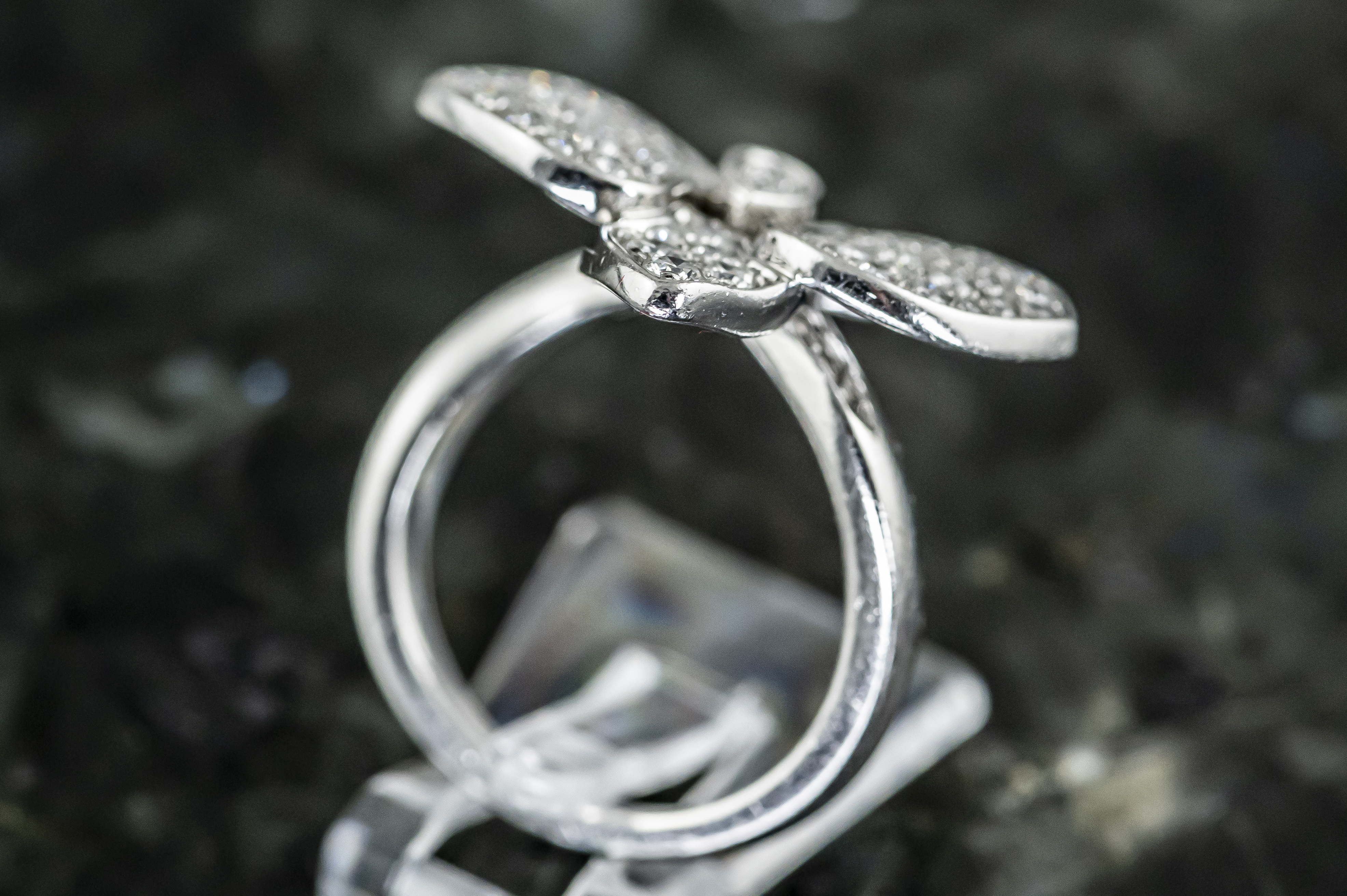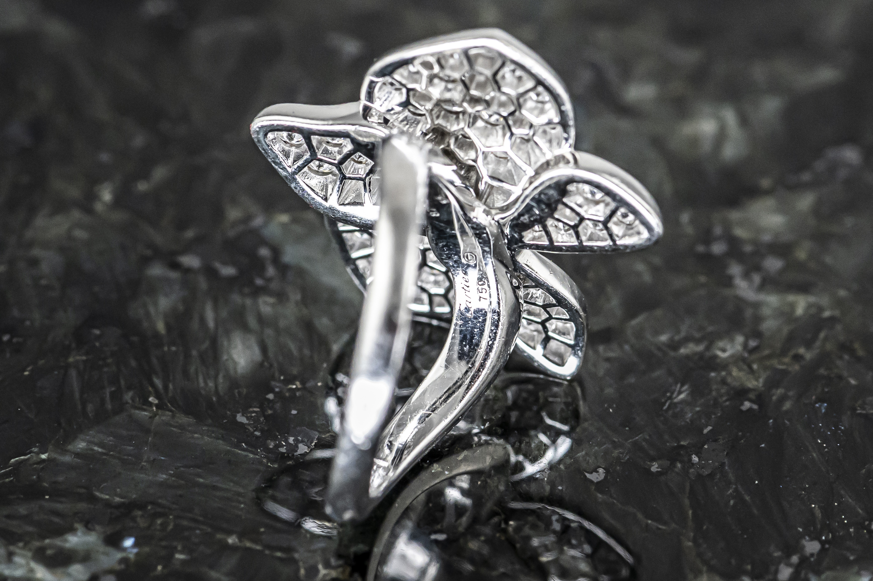 CARTIER CARESSE D'ORCHIDÉES par Cartier Ring in 18k Weißgold | mit Brillanten Pavé gefasst - naturalistischer Orchideenblüten Entwurf | Cartier signiert und nummeriert | Ringgröße 55 - Gesamtgewicht ca. 12.1 Gramm | sehr guter Zustand | verkauft durch die Cartier Boutique Düsseldorf / Königsallee | die Orchidee wird von Cartier als eine ihrer am meisten geschätzten Blumenkreationen und als Quelle kontinuierlicher Inspiration beschrieben - sie verwendeten das Motiv erstmals 1925 und haben es seitdem zu wirklich außergewöhnlichen Juwelen umgestaltet - 2005 lancierte das Maison die Kollektion "Caresse d'Orchidées par Cartier", zu der dieser ansprechende Ring gehört. Dieser Artikel ist differenzbesteuert nach §25A UStG. Dieser Artikel ist sofort lieferbar.