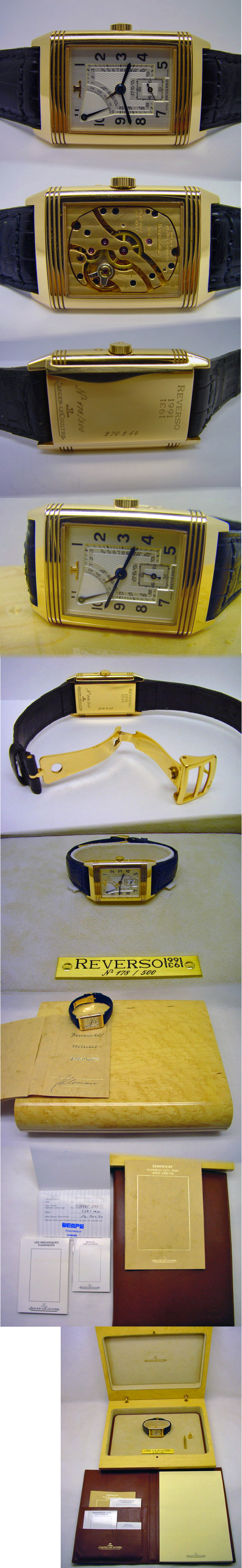 Seltene JAEGER LE COULTRE - Limited Edition "Reverso Septantième 60ème Anniversary - 1931 - 1991" in 18kt Rosegold mit JLC Krokoband und Faltschließe in 18kt Rosegold, Referenz: 270.240.642, Werk: Kaliber 824 - die unbeweglichen Teile des Uhrwerks (Platine und Brücken) sind aus massivem 14kt Gold gefertigt, von Hand dekoriert und poliert - Zifferblatt aus handziseliertem massivem Silber mit gebläuten Edelstahlzeigern, Funktionen: Stunden - Minuten - dezentrale Sekunde bei 6 Uhr - Zeigerdatum aus der Mitte - dezentrale Gangreserve bei 11 Uhr, die Uhr befindet sich in einem nahezu ungetragenen Zustand "NOS" (minimale Lagerspuren!), anbei große Edelholzbox aus Ulmenholz - Garantie und Limitierungszertifikat - Beschreibungen - Korrekturstift und Aufsteller, der Listenpreis für diese Uhr lag bereits in 1991 bei 49.500- DM - alle 500 Exemplare waren nach wenigen Monaten vergriffen, der aktuelle Wiederbeschaffungspreis eines vergleichbaren Modells (Septantième Referenz 300.24.20) liegt unserer Einschätzung nach bei ca. 39.000- €.