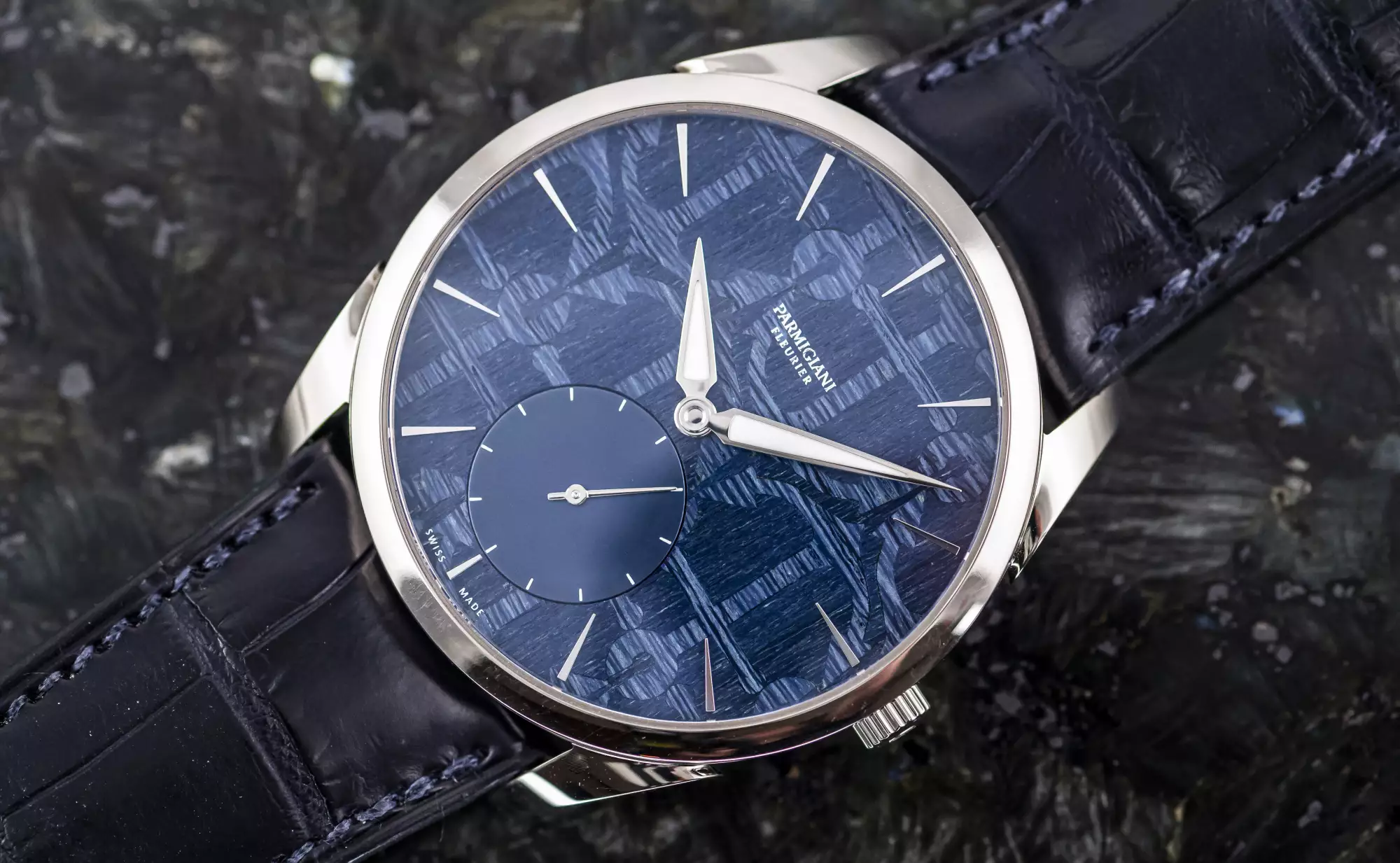 Limitierte Parmigiani Fleurier Tonda 1950 Special Edition 200 Jahre Juwelier Hansen Hamburg mit der Referenz PFS267-1202501 in 18k Weißgold. Streng limitiert auf nur 20 Exemplare mit dem Parmigiani Automatik Kaliber PF701 mit 29 Steinen und einem Mikrorotor aus Platin. Wunderschönes dunkelblaues Zifferblatt in Marqueterie Technik aus Tulpenbaum- und Kotoholz im maritimen Stil gefertigt. Der Durchmesser dieser atemberaubenden Parmigiani beträgt 39.0 mm mit einer Höhe von 7.8 mm, damit hat sie für jedes Handgelenk eine sehr schöne Größe. Dieser Hingucker befindet sich in einem ungetragenen Zustand und ist am Hermes Lederband mit Dornschließe in 18k Weißgold. Die Uhr kommt im Full Set mit original Box und Umkarton - Limitierungszertifikat - PARMIGIANI Garantie Karte (verkauft am 24. Mai 2014 durch Hansen / Hamburg) - Fotos - Beschreibung. Dieser Artikel ist sofort lieferbar. Dieser Artikel ist differenzbesteuert nach §25A UStG.