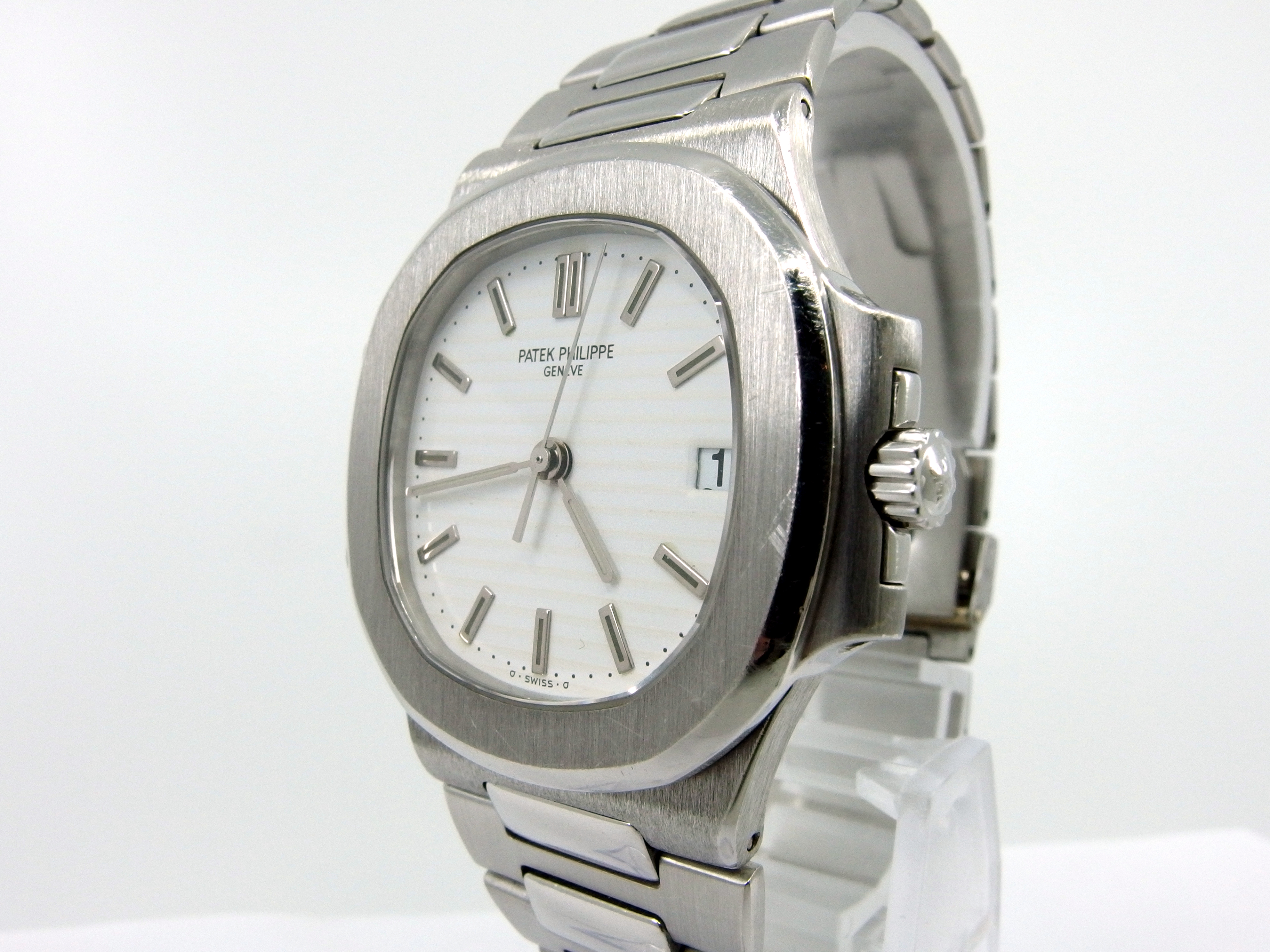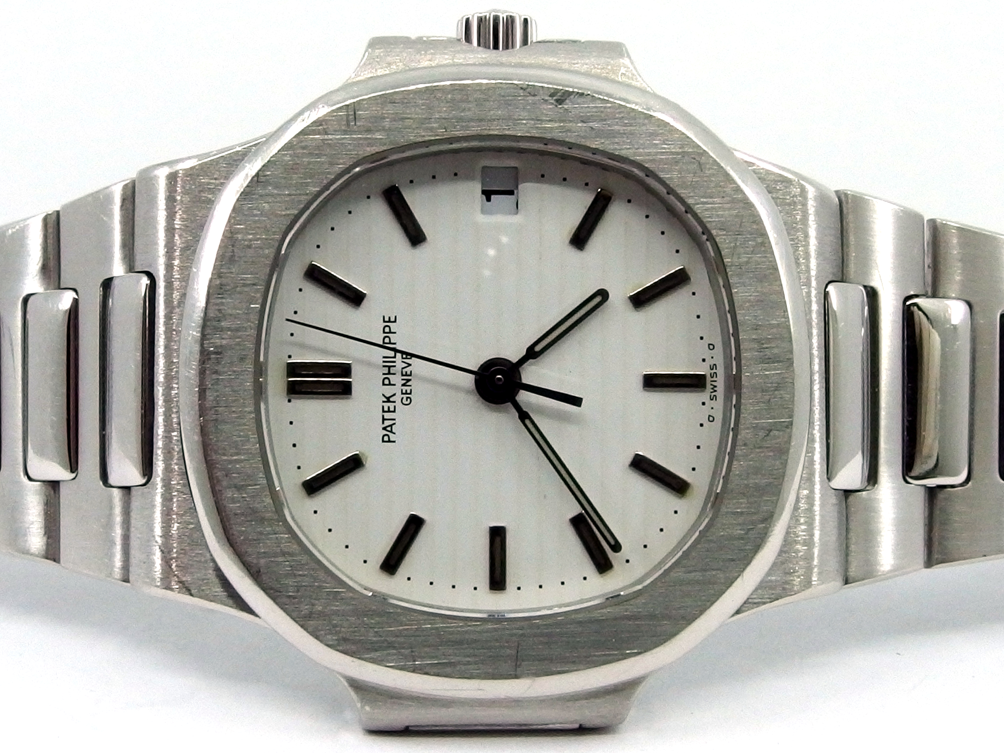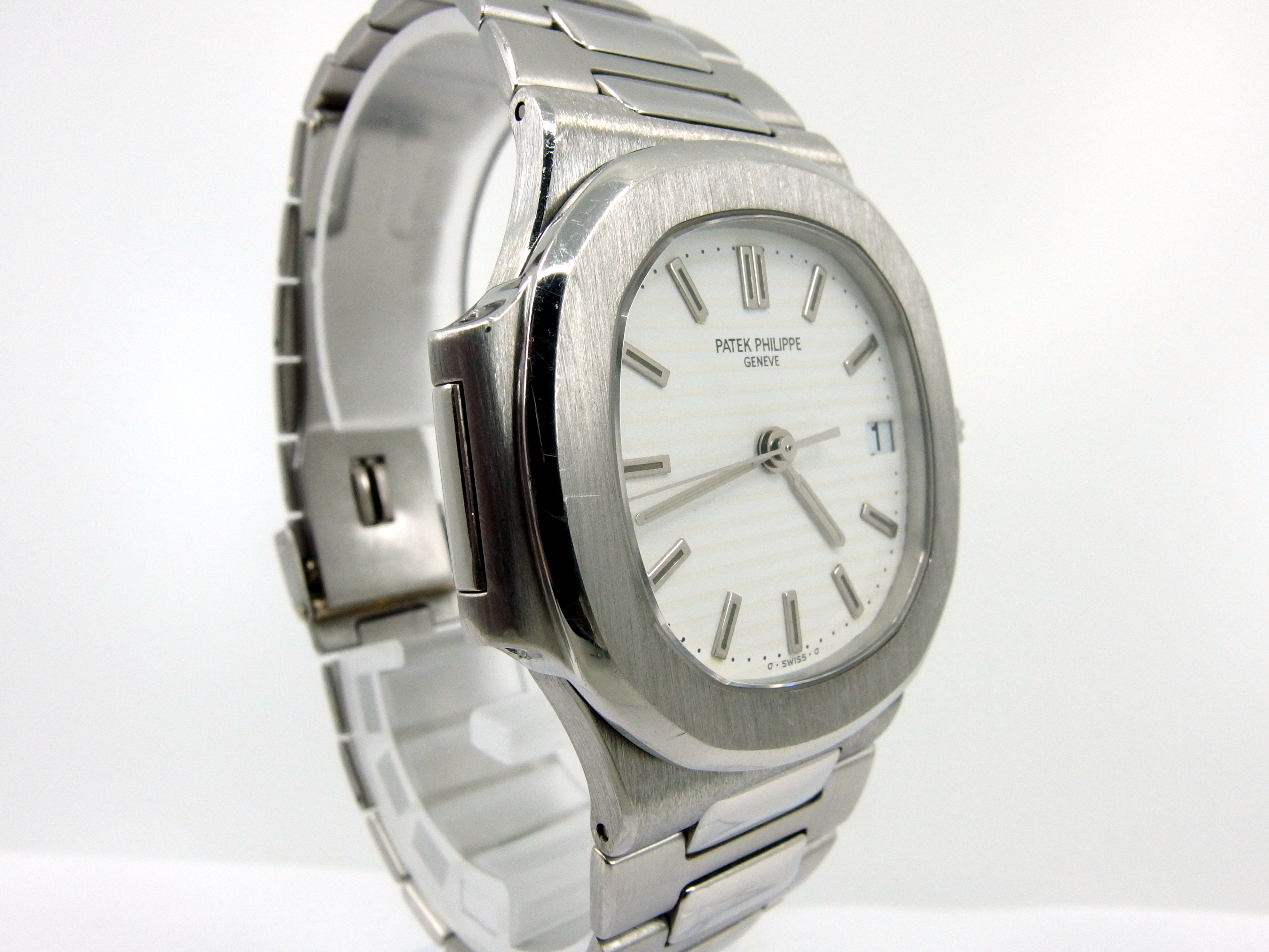 Sehr seltene PATEK PHILIPPE Nautilus Herrenuhr in 950 Platin, Referenz: 3800/1P-001, Kaliber 330 SC Automatik, Durchmesser 37mm, sehr schöner Zustand, seltenes weißes Zifferblatt, anbei Patek Holzbox - Ledermappe mit Booklets & Beschreibung - original Zertifikat (verkauft am 22. Mai 1997 durch einen deutschen PP Konzessionär) - Wempe / PP Servicerechnung aus 2011. Dieser Artikel ist differenzbesteuert nach §25A UStG. Dieser Artikel ist sofort lieferbar.