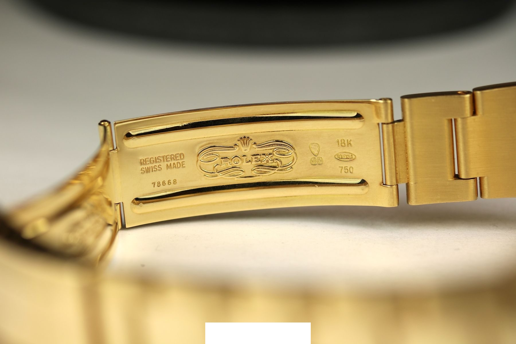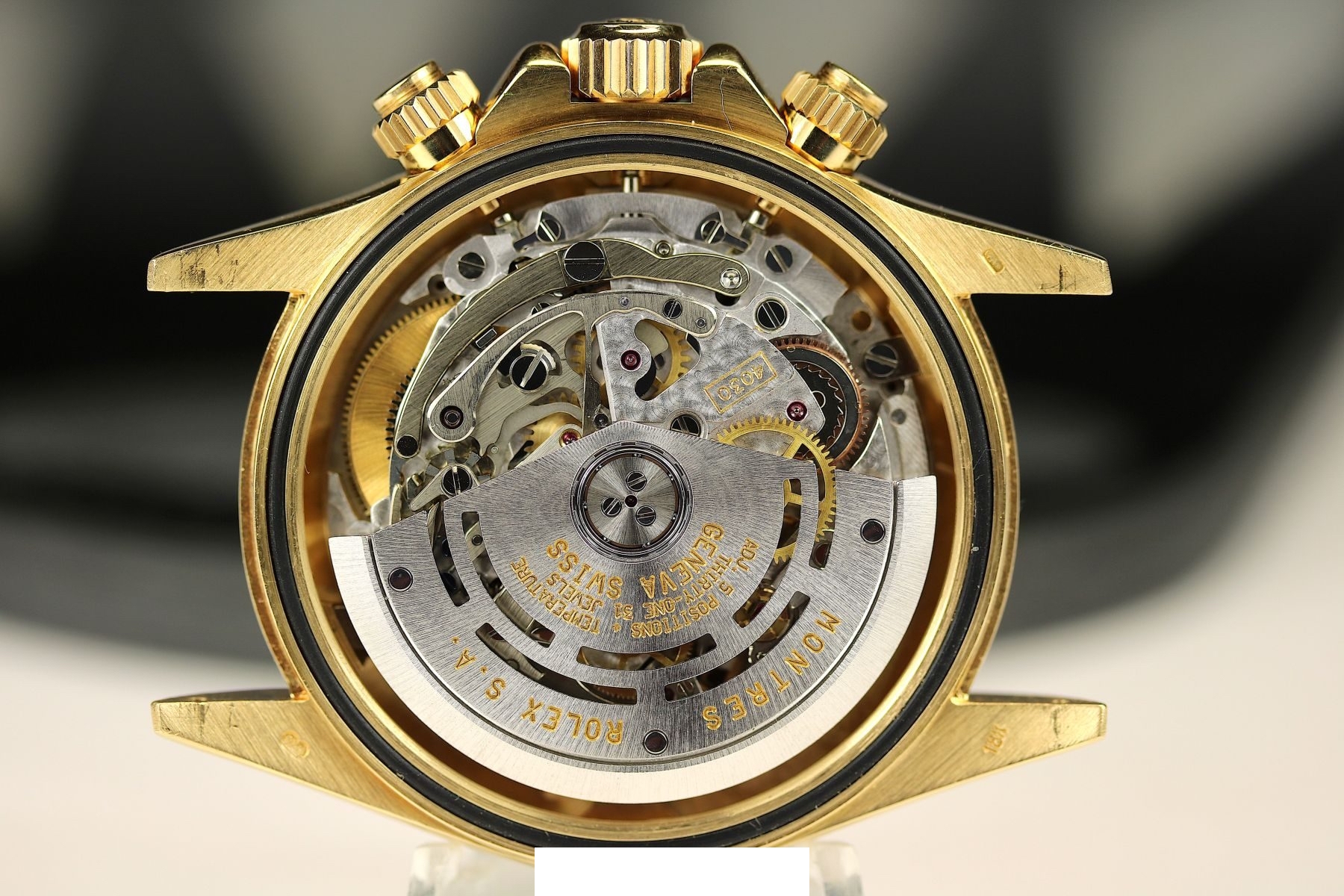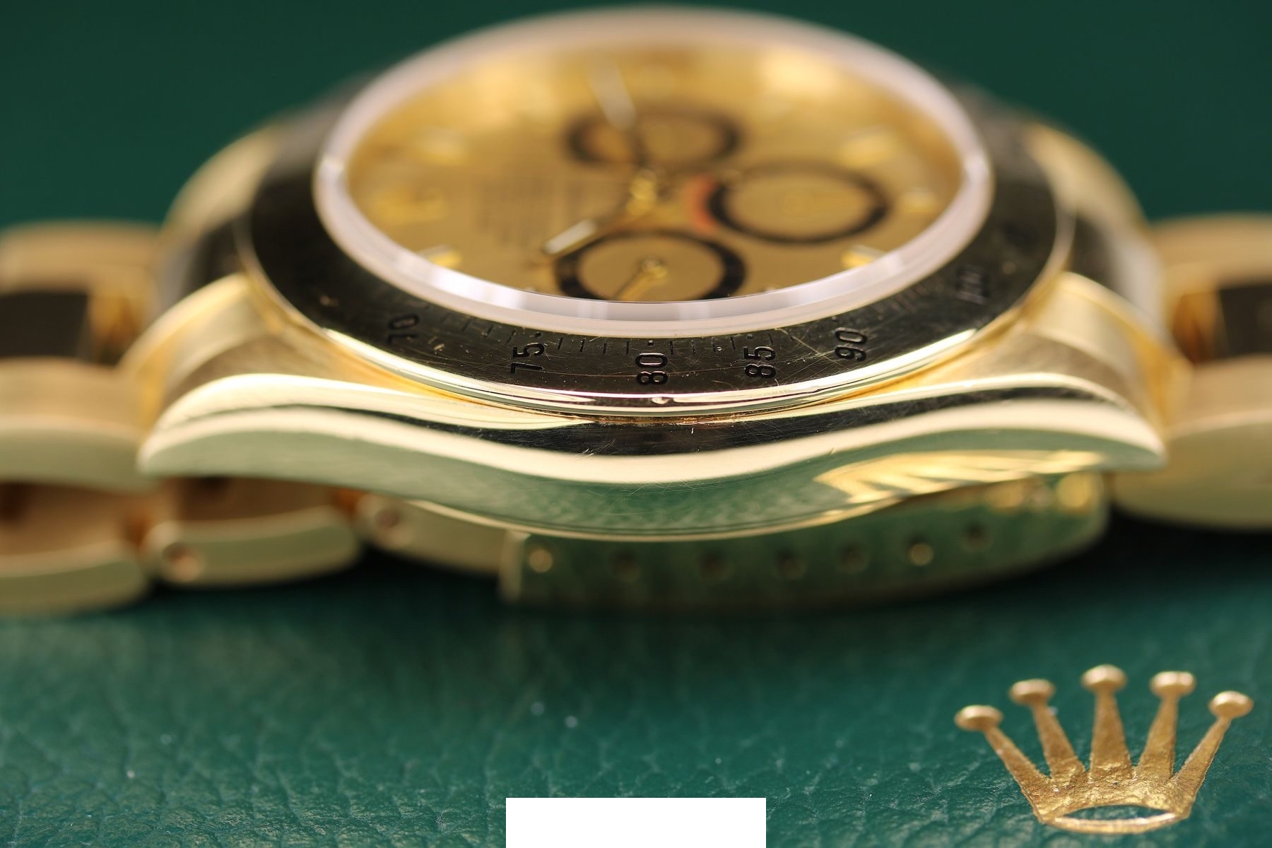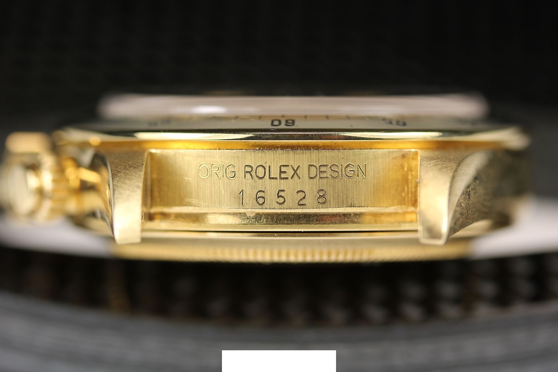 Rolex Daytona 16528 R-Serie in sensationellem Zustand, eine wunderbare Uhr aus der ersten Serie der Daytona mit Zenithwerk. Alles was die Schlichtheit und Schönheit der ersten Serie ausmacht ist vorhanden: Floating dial mit Inverted 6 - 200er Lünette in sehr gutem Zustand. Die Uhr war schon mal im Service, hat dabei aber weder den originalen Schliff noch die Kanten verloren, noch wurde am Gehäuse viel poliert. Das Band ist wie neu, hat alle (12) Glieder und natürlich die alte Schließe, zum Baujahr passend ohne Überwurfsicherung. Gangverhalten ist excellent, kein Anzeichen für eine baldige Revision. Wer ein Porzellan Zifferblatt hat für diese Uhr, ist ein König. Die Uhr war einmal bei Rolex zum Service, die Rechnung wird mitgeliefert. Selbstverständlich ist auch die Seriennummer des Werkes passend zur Serial der Uhr. Die Uhr ist ab dem 10. September 2017 lieferbar.