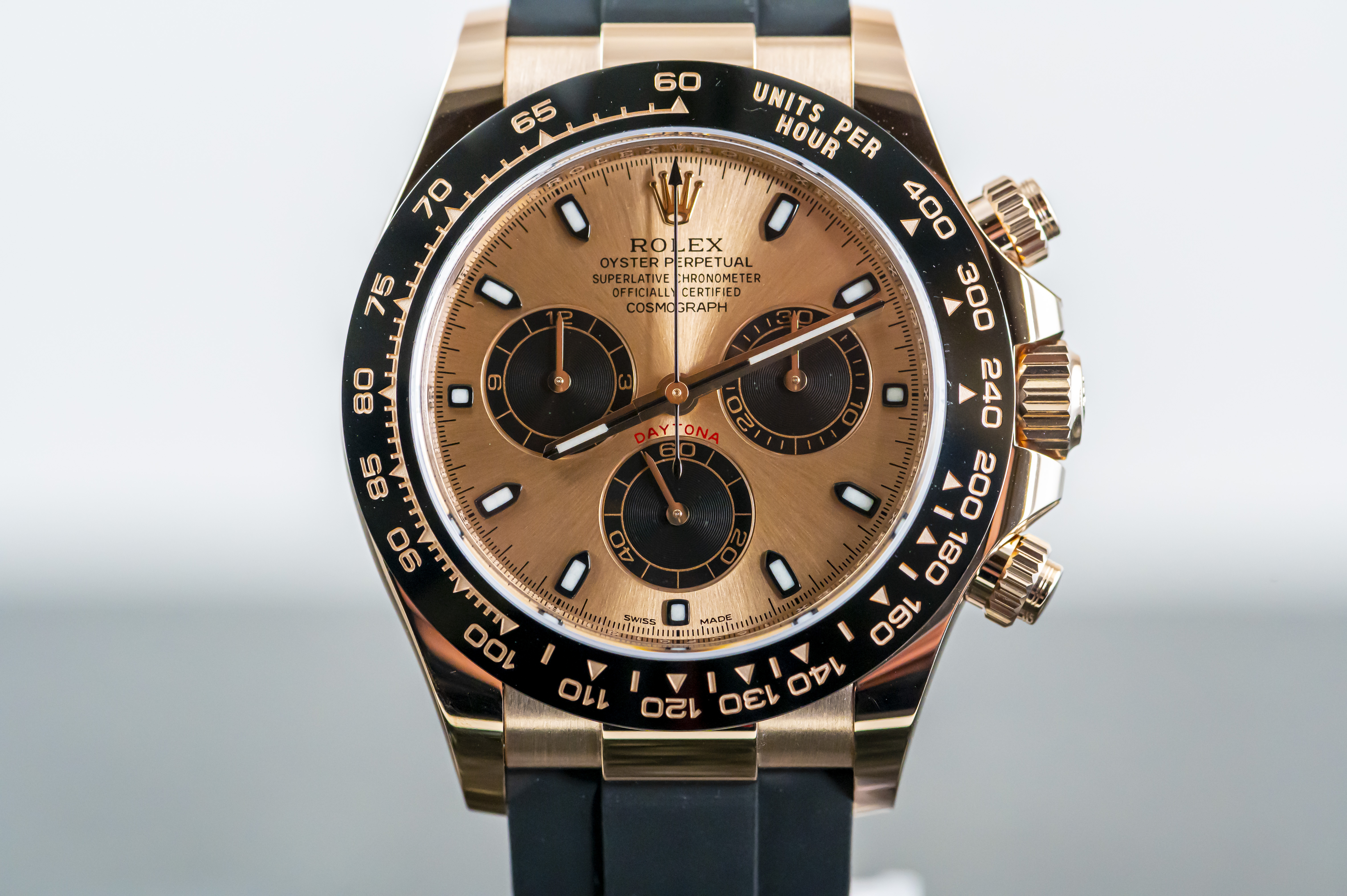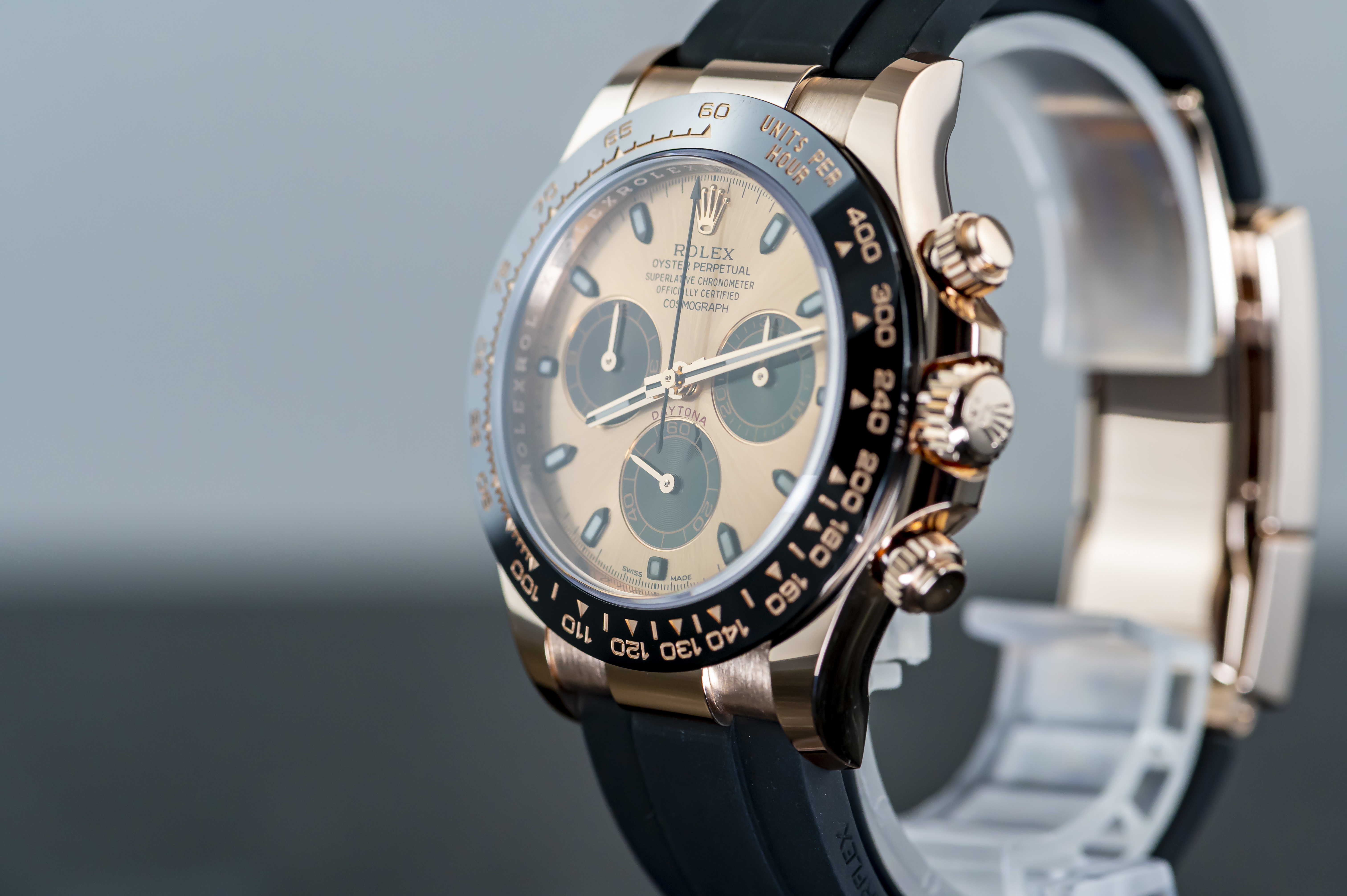 ROLEX Cosmograph Daytona Chronometer Oysterflex in Everose Gold | Referenz 116515LN | Oysterflex Armband | Rolex Cerachrom Lünette mit gravierten Ziffern und Tachymeter Skalierungen | nahezu ungetragener Zustand | anbei Box mit Umkarton - Garantiekarte LC100 (verkauft im Mai 2020 - Bucherer Deutschland) - Booklets - Lünettenschutz - Hangtag. Dieser Artikel ist differenzbesteuert nach §25A UStG. Dieser Artikel ist sofort verfügbar.