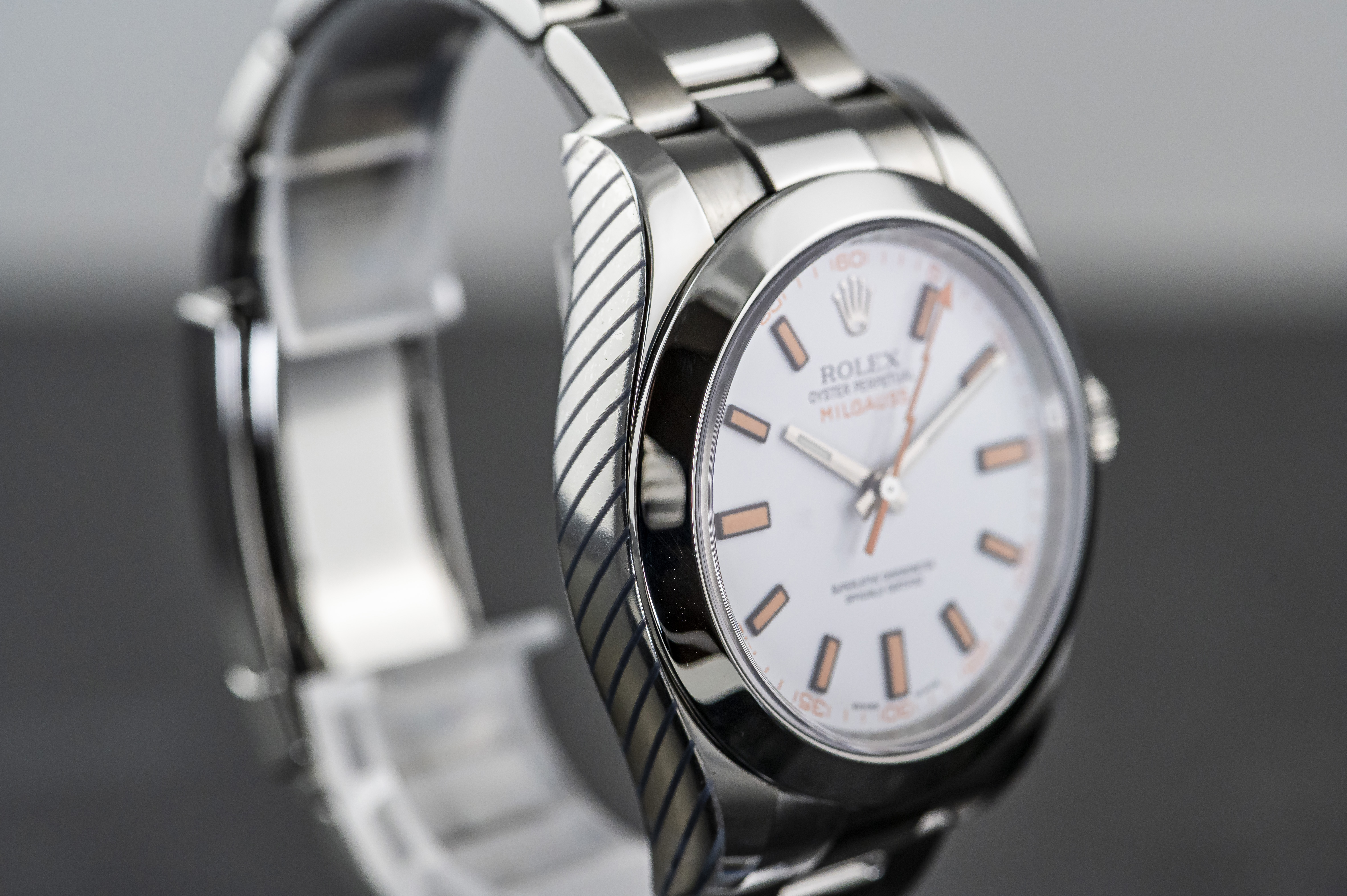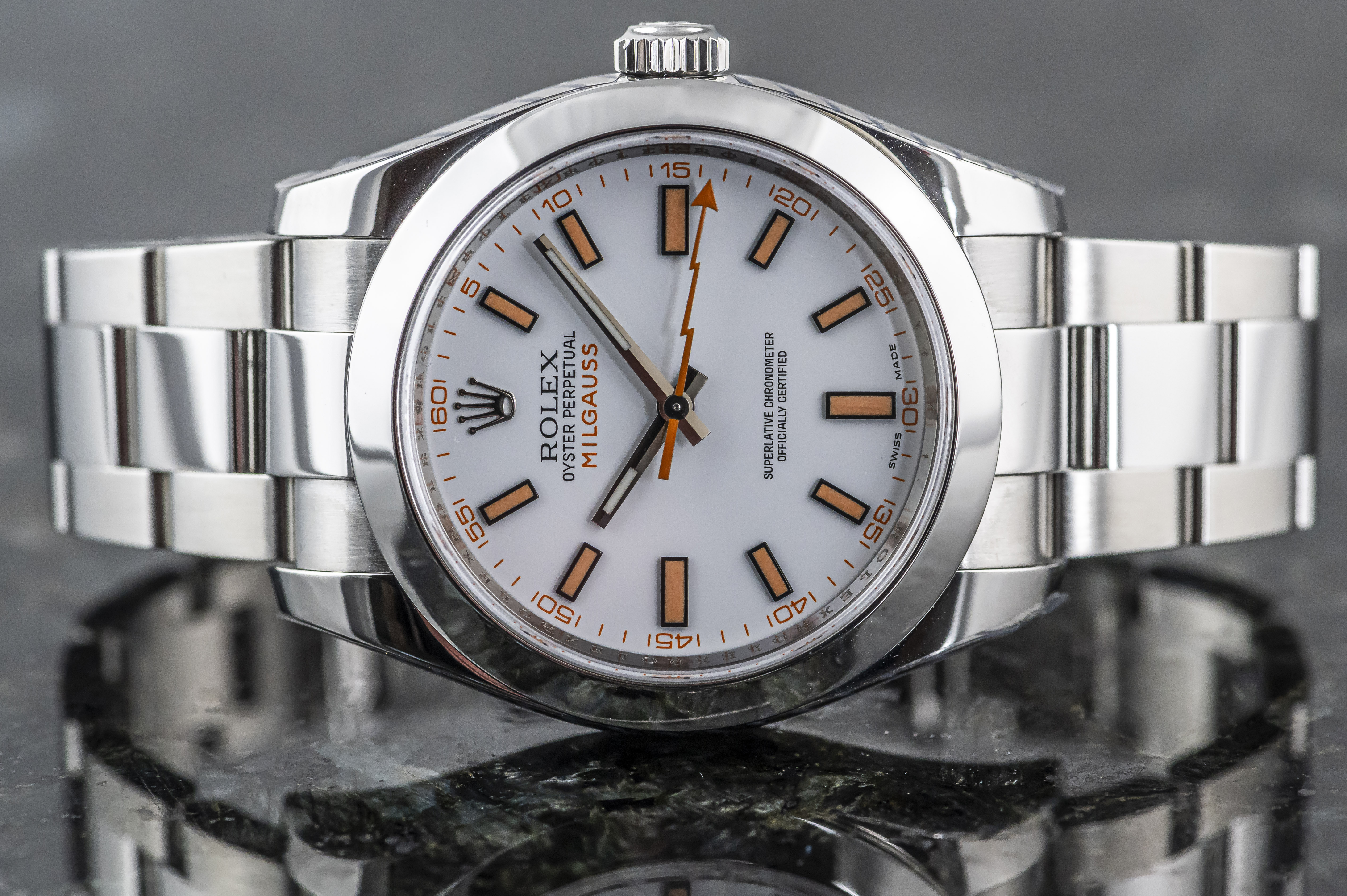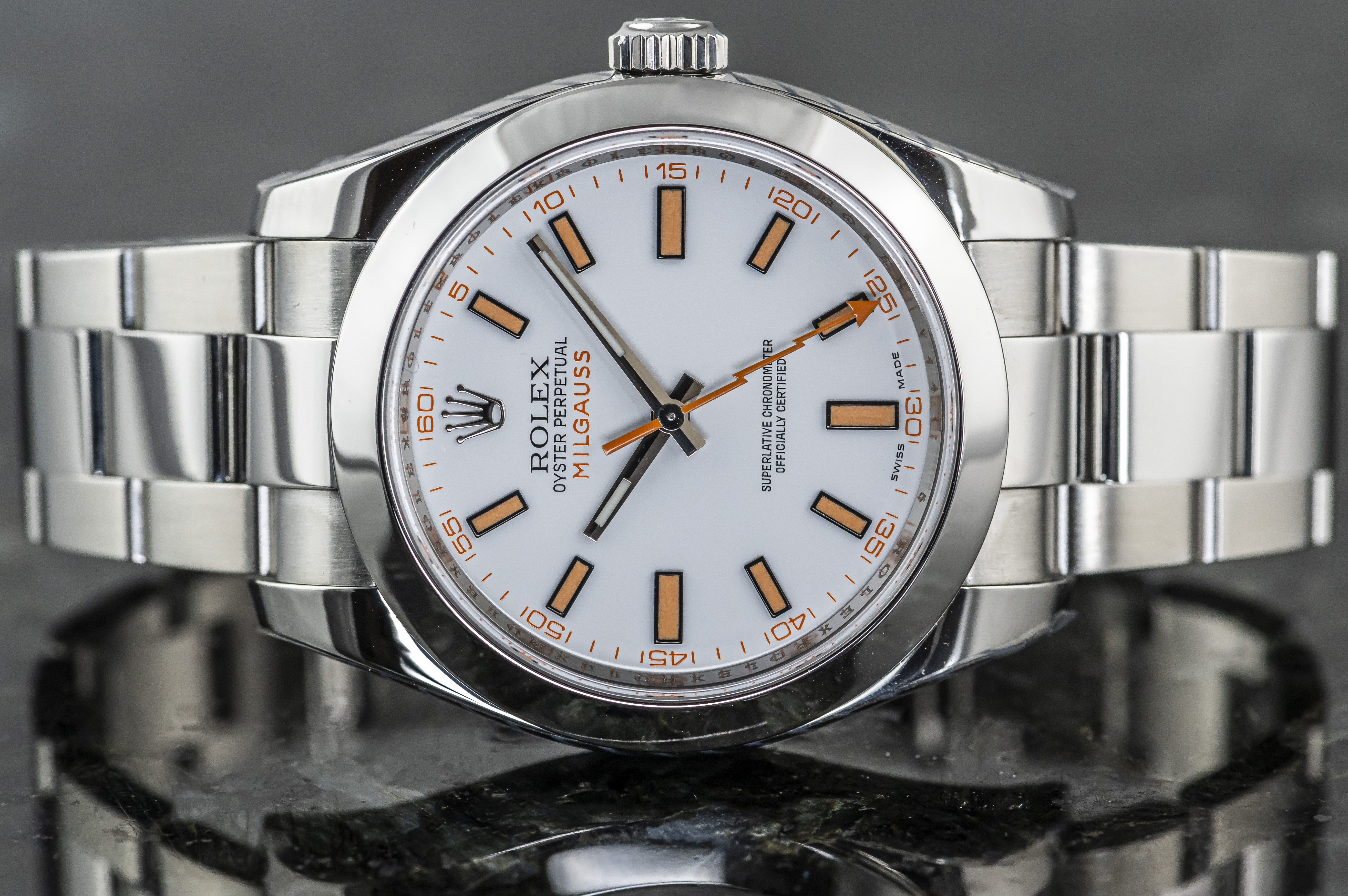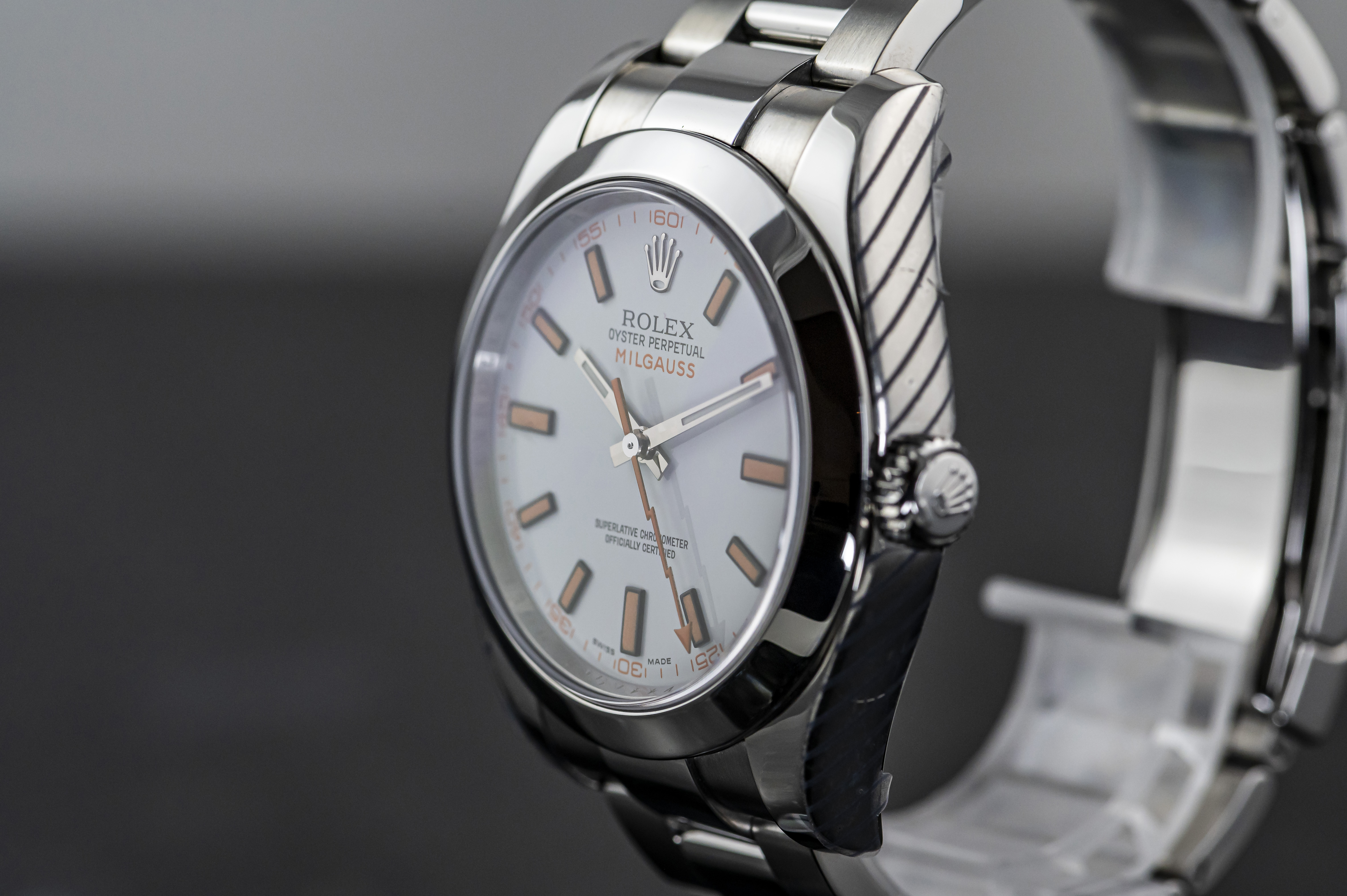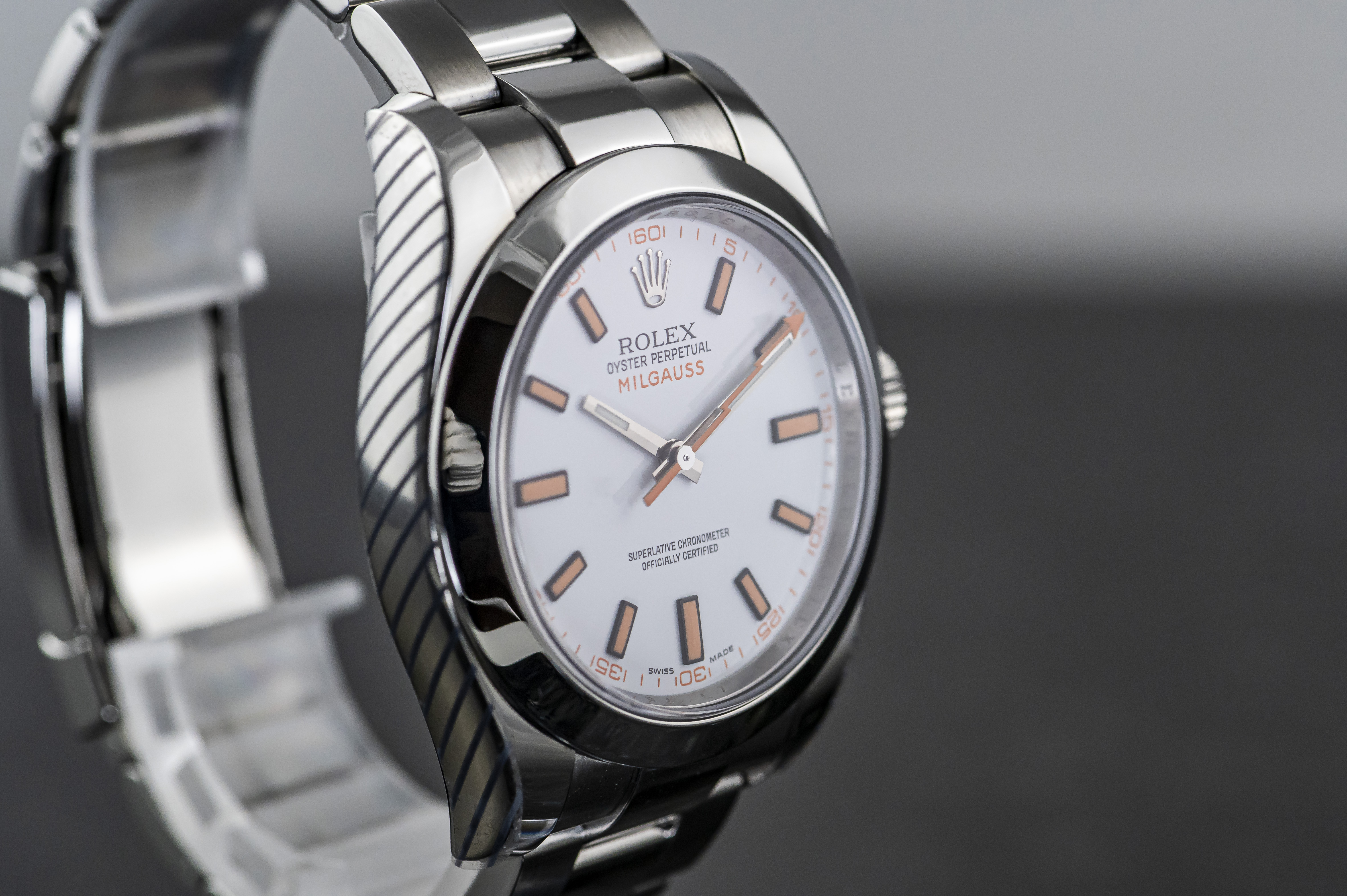 ROLEX MILGAUSS Chronometer "white" in Stahl | Referenz 116400 | SEL Oysterband | Random Seriennummer | polierte Lünette | sehr guter Zustand | anbei Rolex Reiseetui - Garantiekarte (verkauft im November 2016 - Blondi in Modena / Italien). Dieser Artikel ist differenzbesteuert nach §25A UStG. Dieser Artikel ist sofort verfügbar.