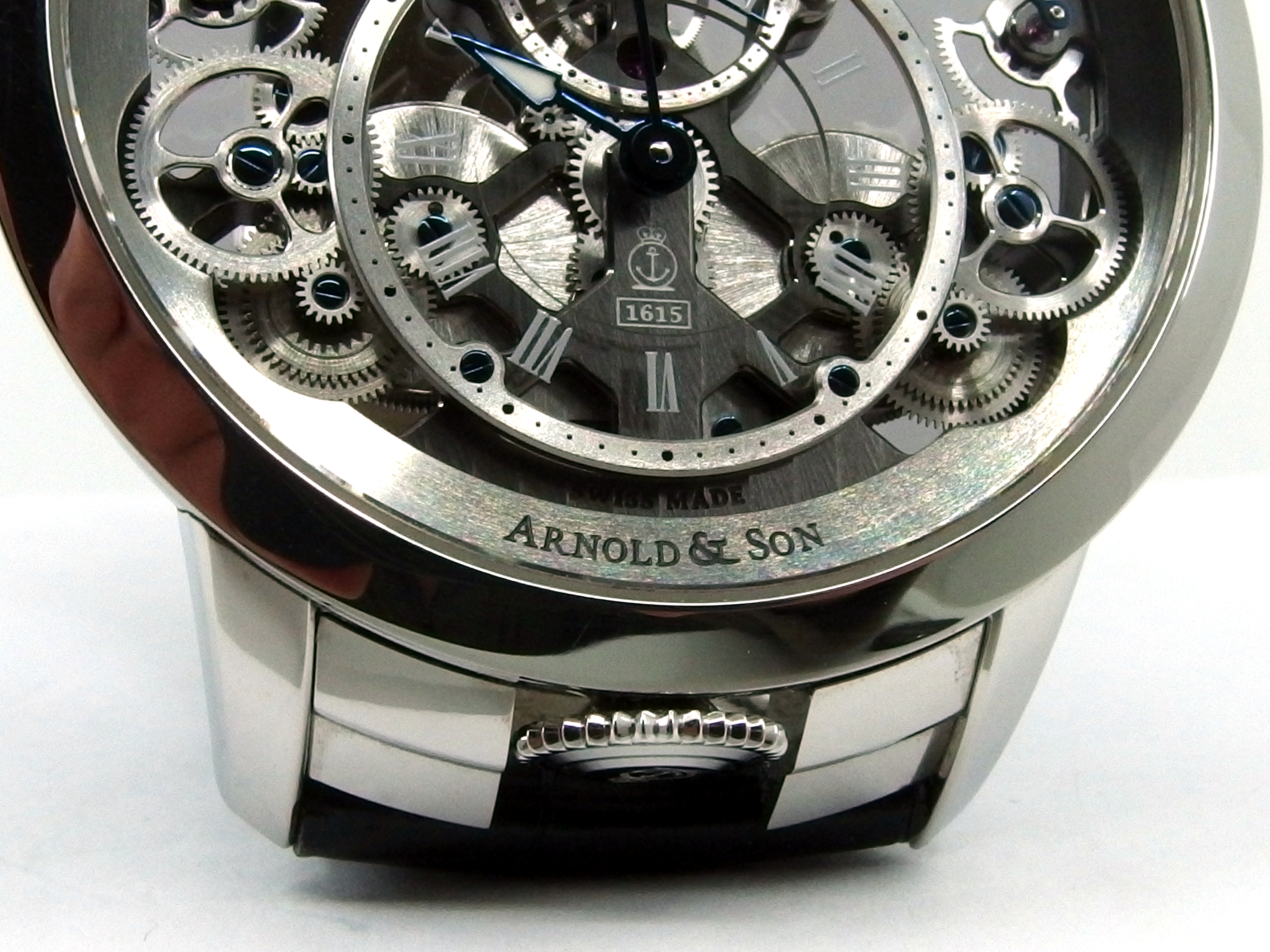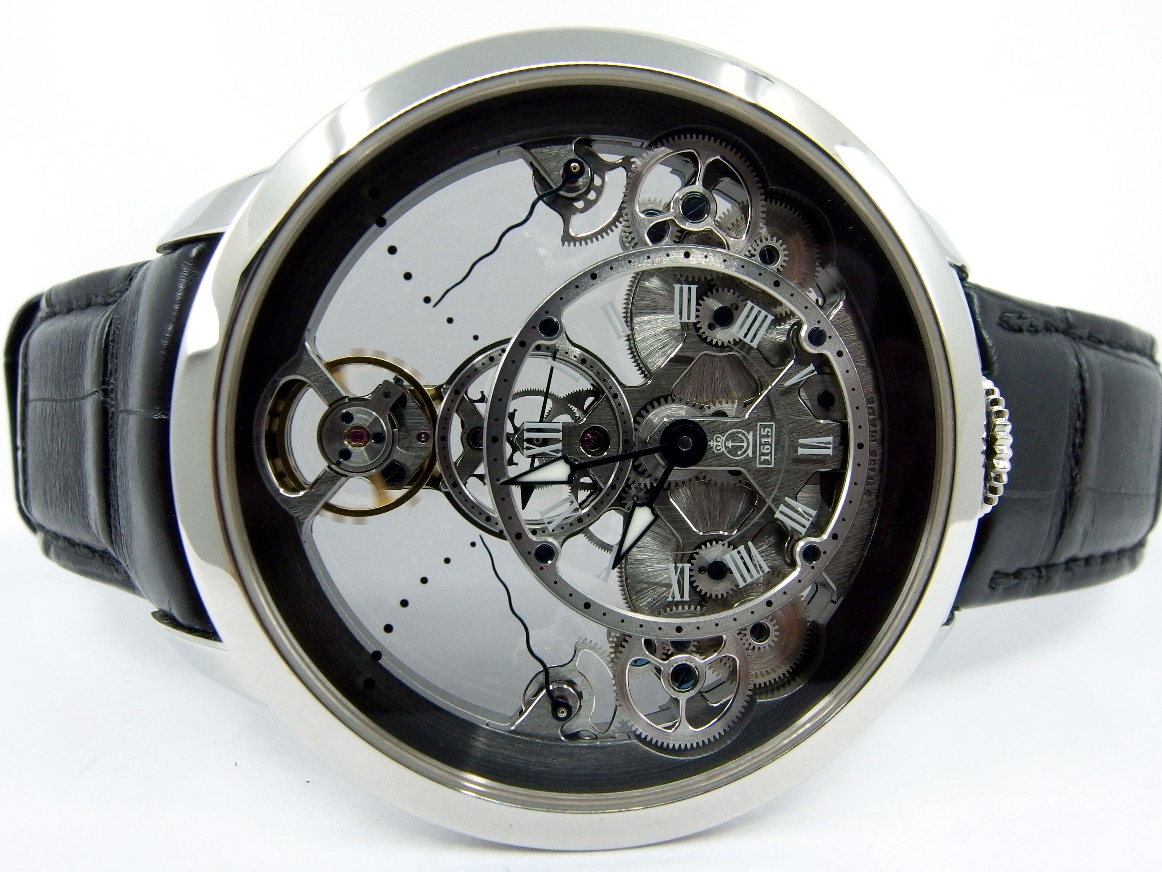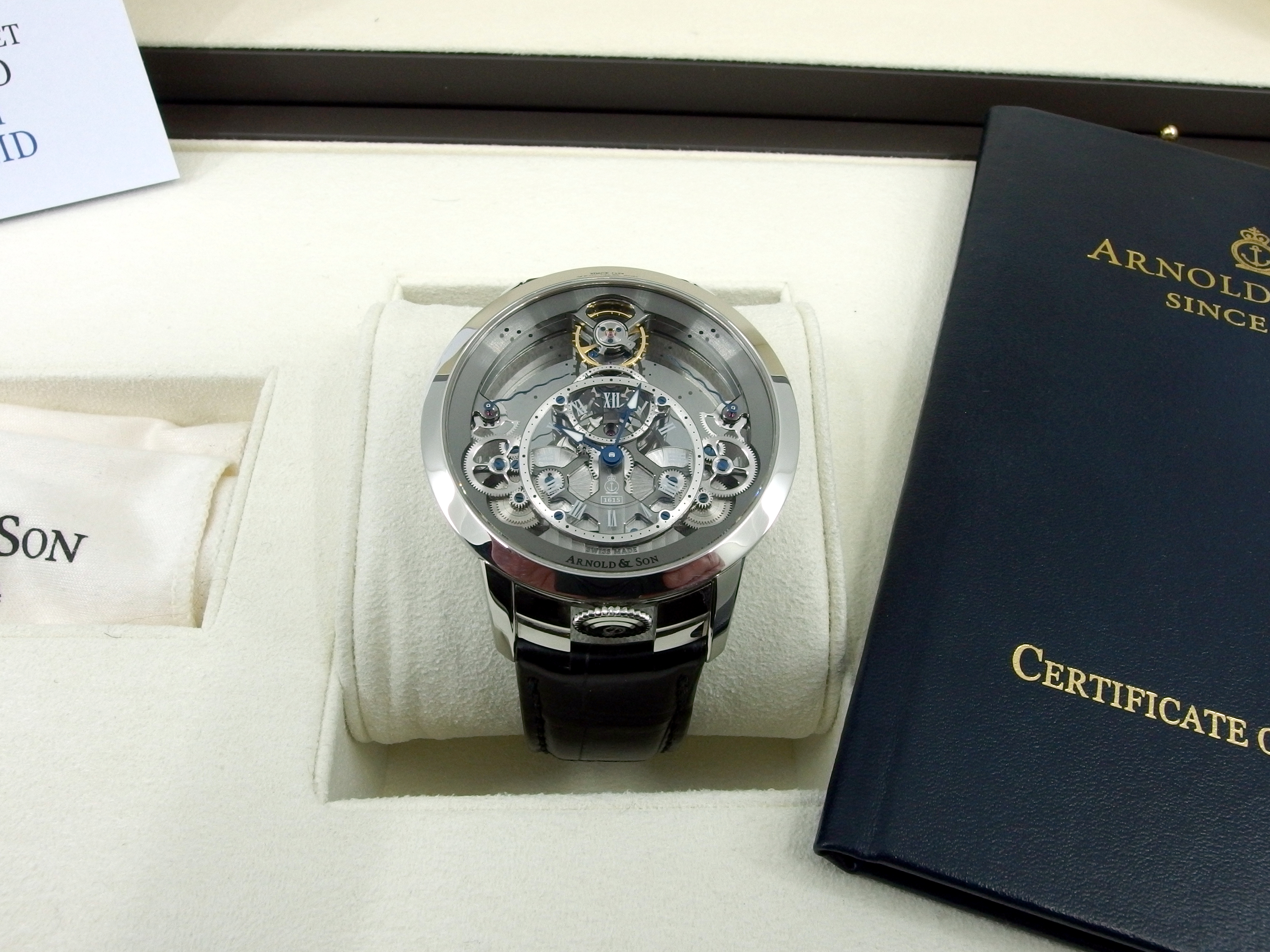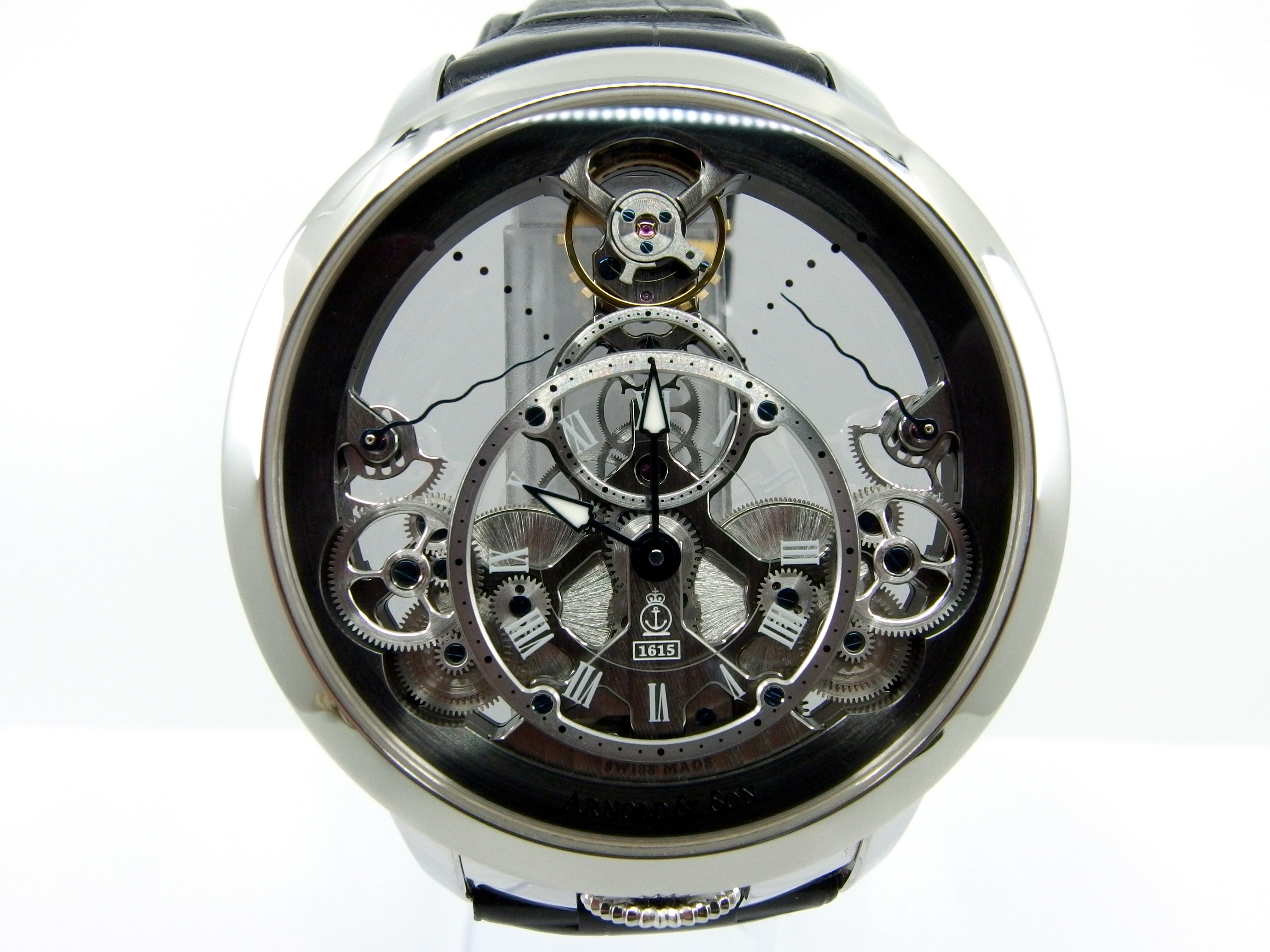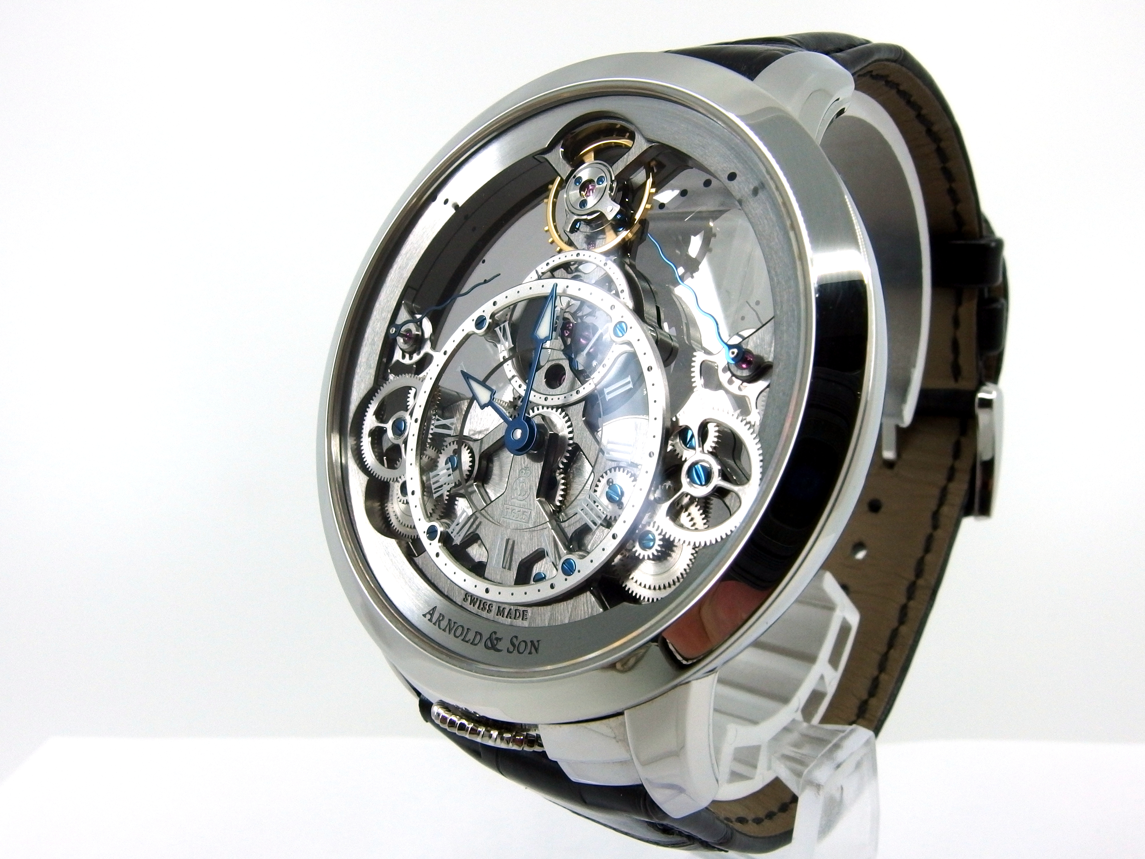 Arnold & Son Instrument Collection TIME PYRAMID in Edelstahl, Referenz 1TPAS.S01A.C124S, skelettiertes Manufakturkaliber A&S 1615 - mechanisches Uhrwerk - Handaufaufzug - doppeltes Federhaus - skelettiertes Werk aus Neusilber - NAC Beschichtung mit Haute Horlogerie-Finissierung - von Hand angelierte Brücken mit polierten Kanten - satinierte Hauptplatine - Genfer Streifenschliff - gebläute Schrauben, Funktionen: Stunden - Minuten - Sekunden - zwei Gangreserveanzeigen, Durchmesser 44,6mm, gewölbtes Saphirglas mit beidseitiger Antireflex-Beschichtung - transparenter Saphirglasgehäuseboden mit grauer Tönung, sehr guter Zustand aus Sammlung, anbei Box - Zertifikat - Booklet. Dieser Artikel ist differenzbesteuert nach §25A UStG. Dieser Artikel ist sofort lieferbar.