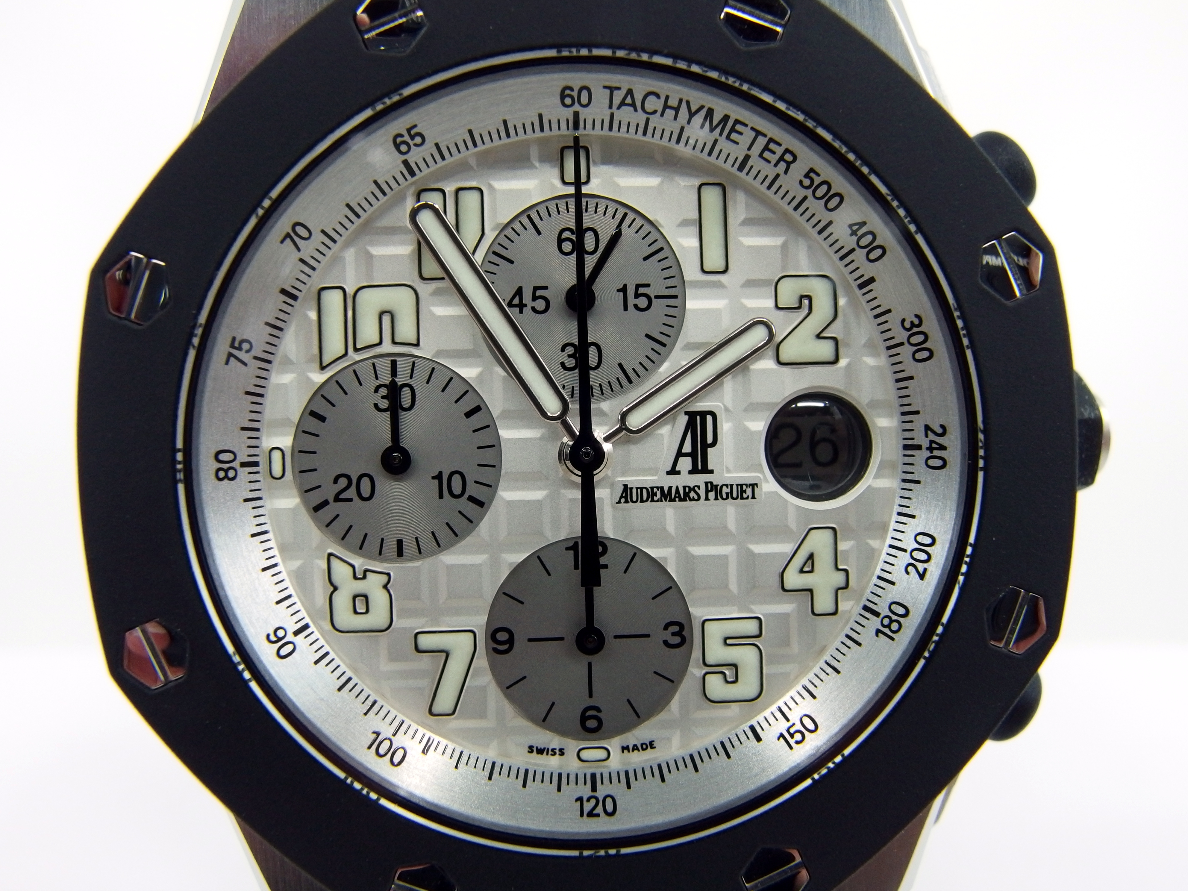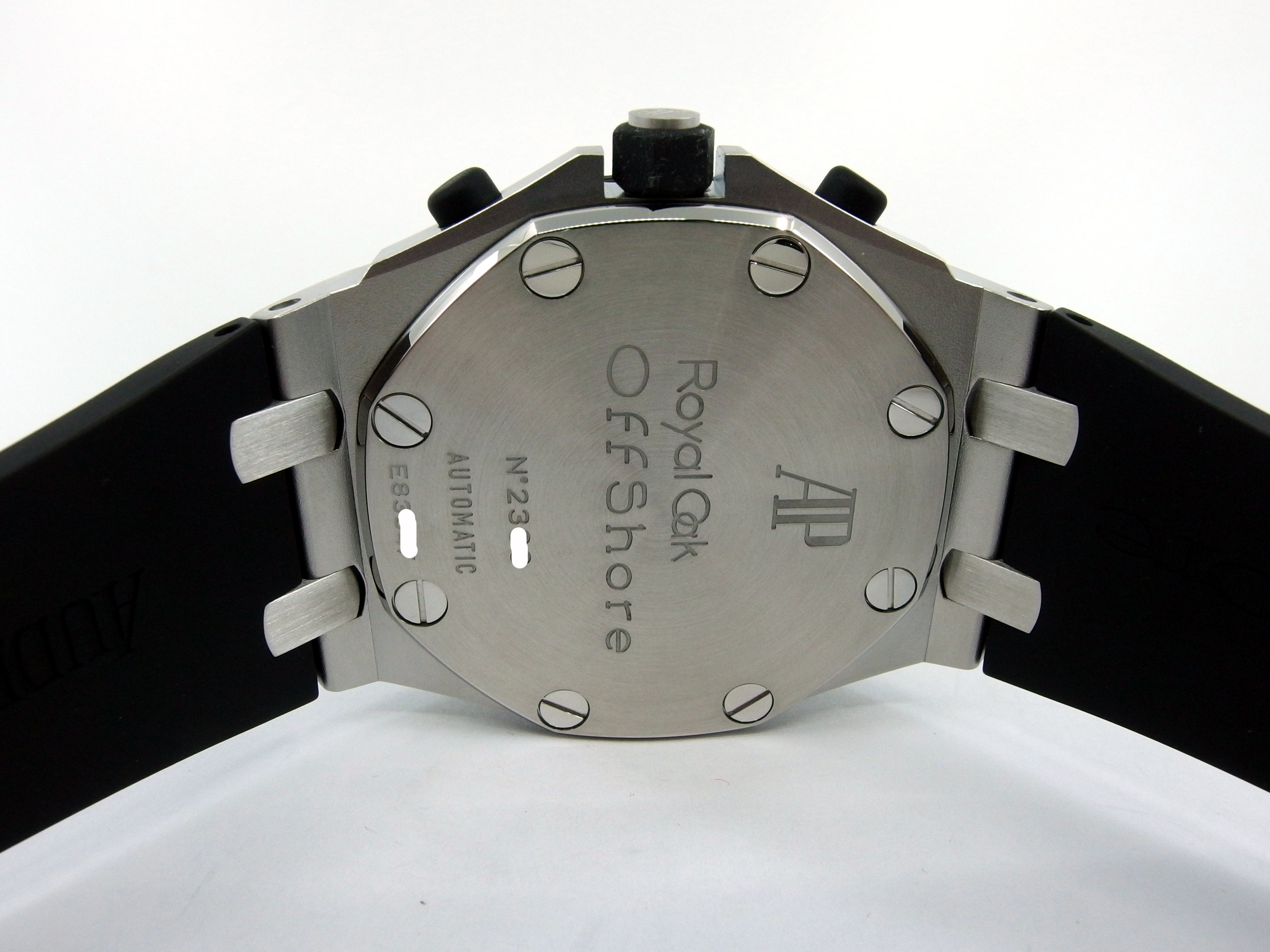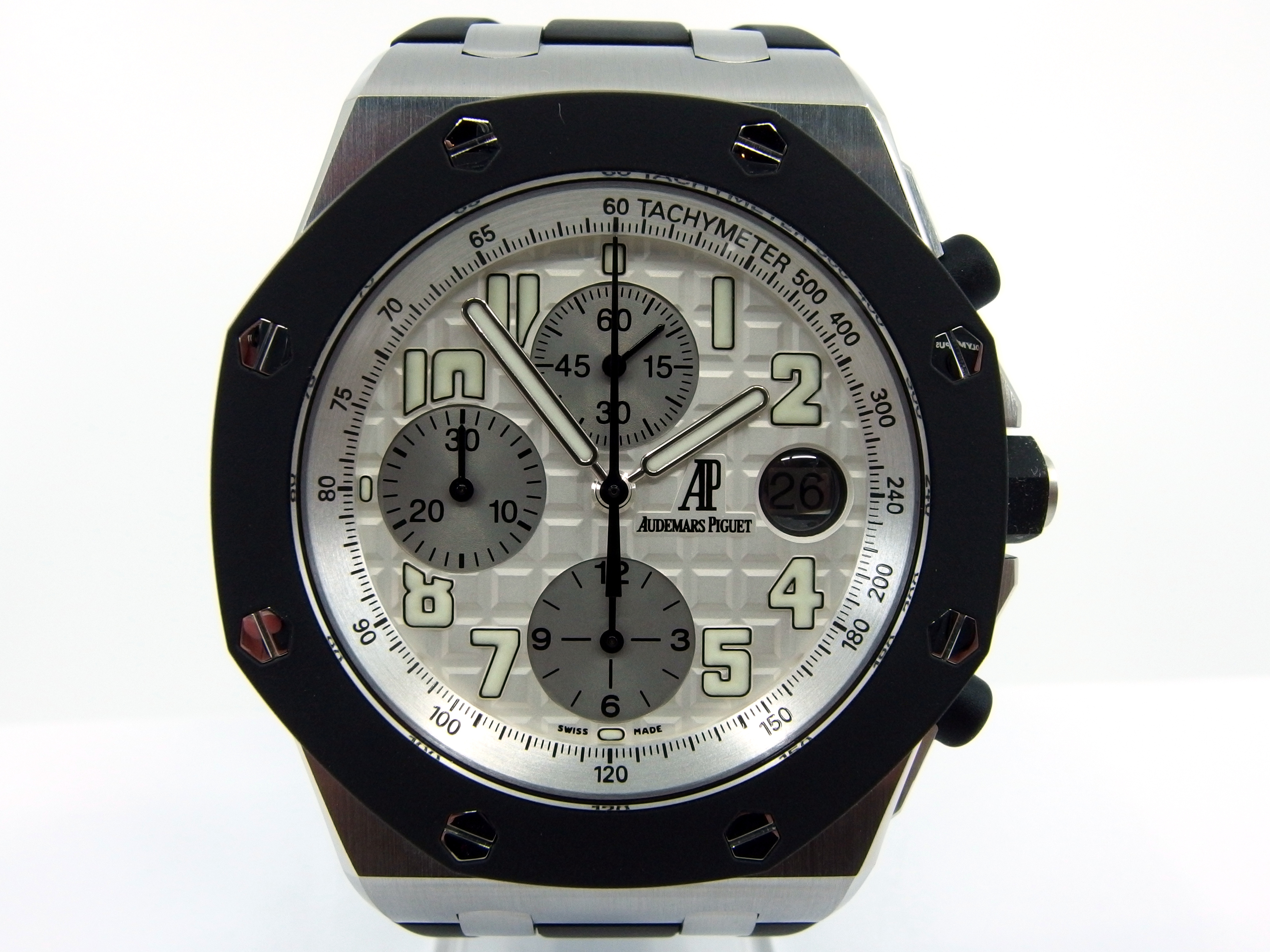 AUDEMARS PIGUET Royal Oak Offshore Rubber Chronograph, Reference 25940SK.OO.D002CA.02, in stainless Steel with Rubber Strap and Bezel, deployment Clasp, the Watch was sold on 16.7.2003 by a European A.P. Concessionaire, in September 2018 a Service at A.P. Service Center was made (replacement / renewal of all Seals / Gaskets - Crown and 2 Pushers - Rubber Strap - Bezel) since unworn and thus perfect Condition, enclosed Box - Certificate - Description - Service Invoice in Copy. The Sale of this Watch is Subject to differential-taxation according to §25A UStG (Value Added Tax Act). This item is directly available.