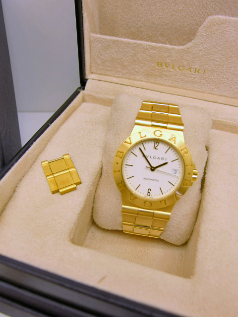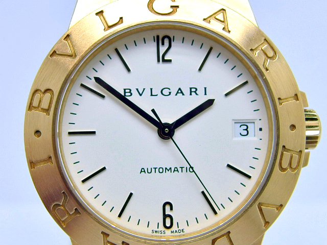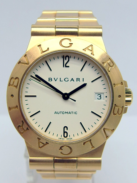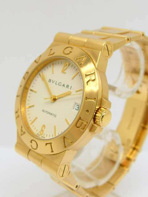 BULGARI DIAGONO Gents "BVLGARI BVLGARI" in 18k Yellowgold, Reference LCV 35 6, heavy Bulgari Gold Bracelet with folding clasp in 18k Yellowgold, solid and heavy Bulgari from the Diagono Series, automatic Caliber, Functions: Hours - Minutes - Seconds - Date, Diameter 36 mm 19 cm, total Weight about 170 gr., Bezel engraved with two BVLGARI Logos, Sapphire Crystal, winding Crown screwed down, Caseback screwed, the Watch is in a very good condition, enclosed with the following Accessories: original Warranty Certificate - Box with Carton - Map. This item is directly available. The sale of this watch is subject to differential-taxation according to §25A UStG (Value Added Tax Act).
