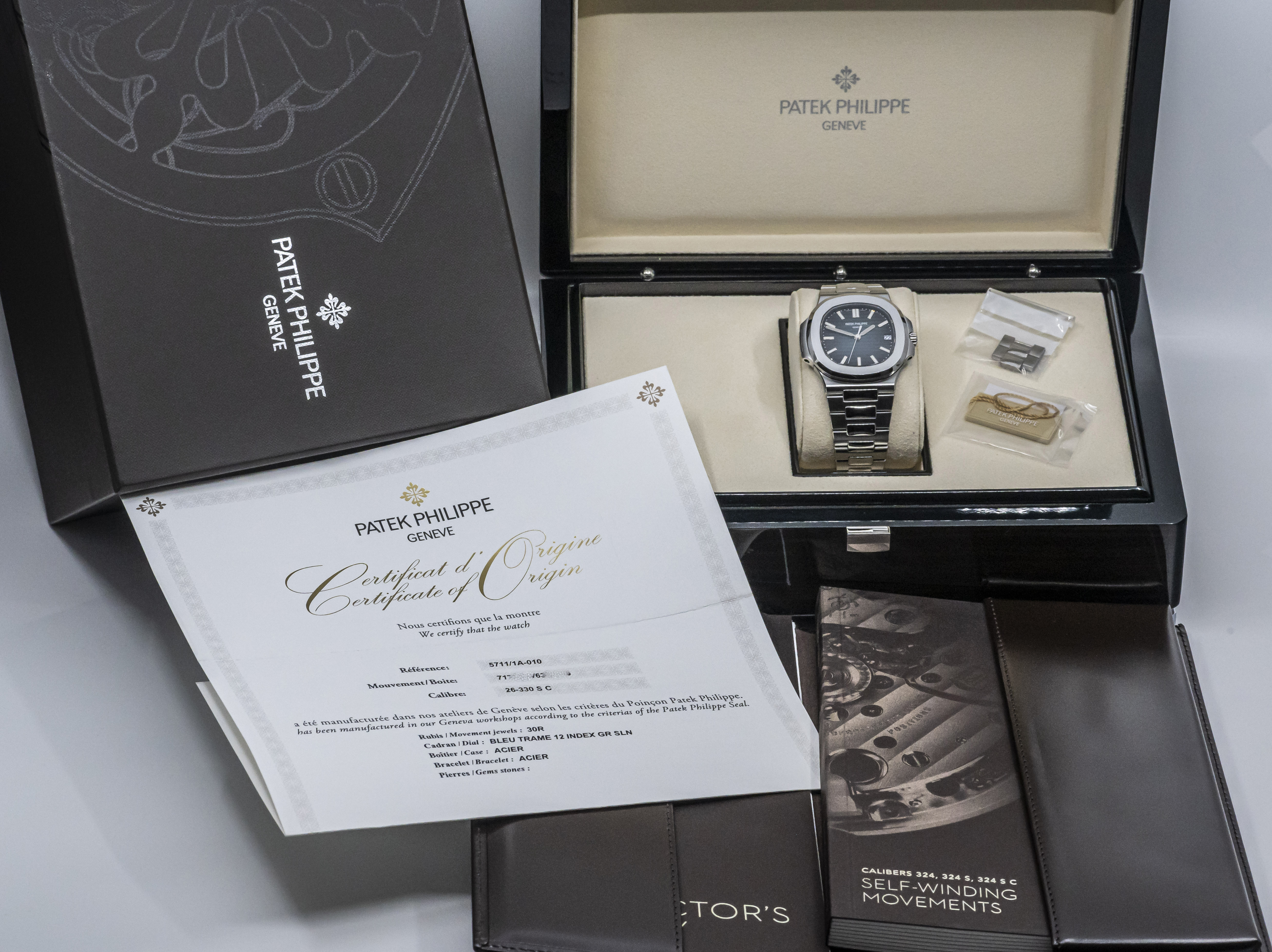 PATEK PHILIPPE Jumbo Nautilus blue | Reference 5711/1A-010 in Steel | Steel Bracelet and butterfly clasp | new Caliber 26-330 SC with Date & center Second - self-winding | the Watch is in very good and unpolished Condition | enclosed Patek wooden Box - Leathermap - Certificate (sold in Germany 2020) - Booklets - Salestag. This item is directly available. The Sale of this Watch is subject to differential-taxation according to §25A UStG (Value Added Tax Act).
